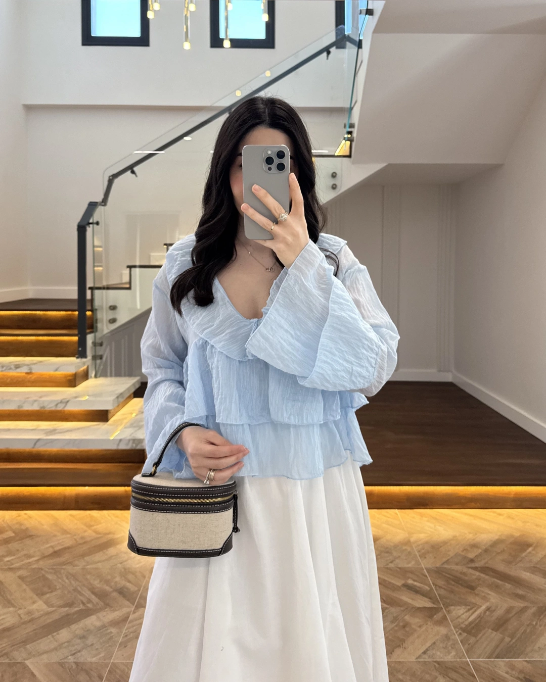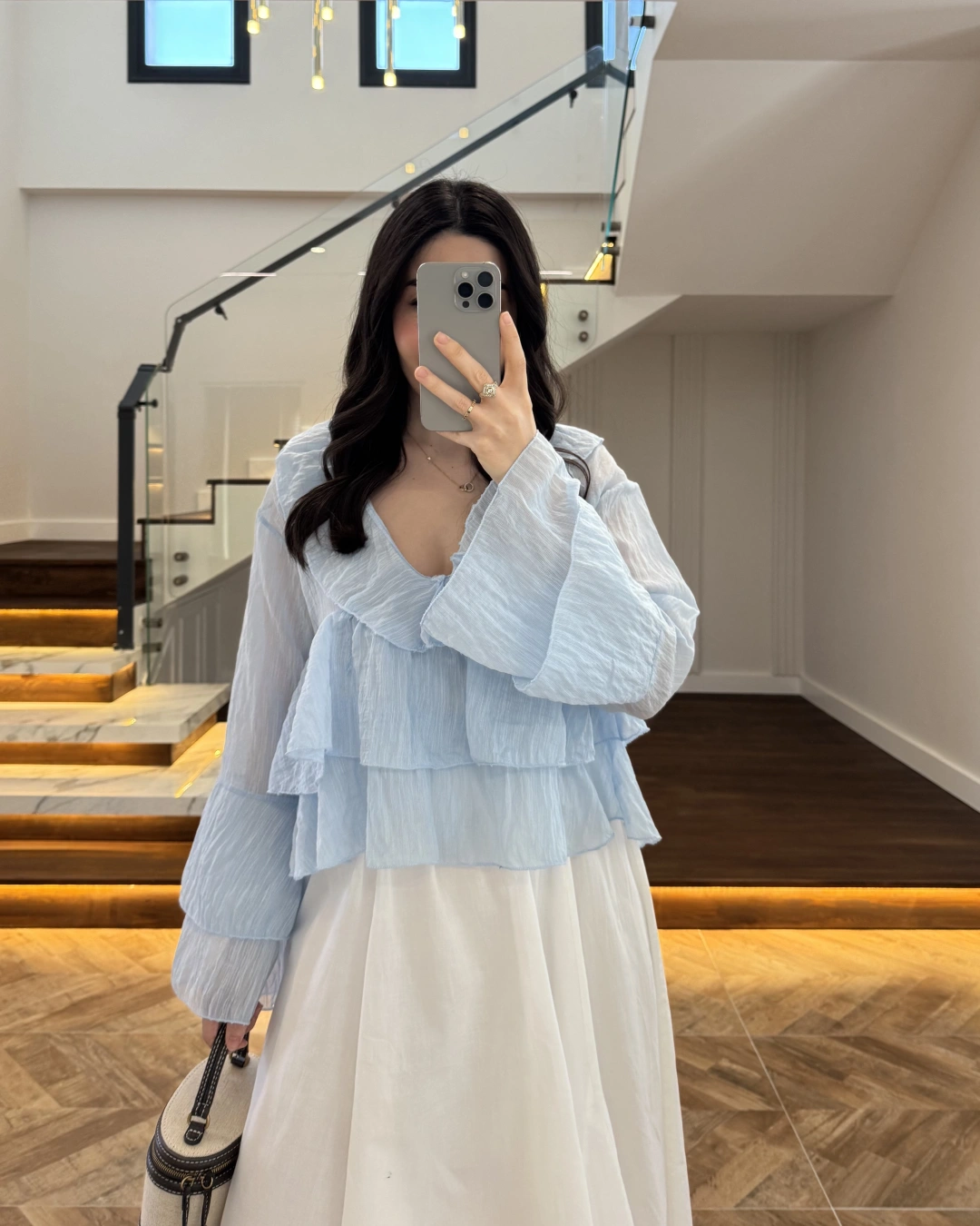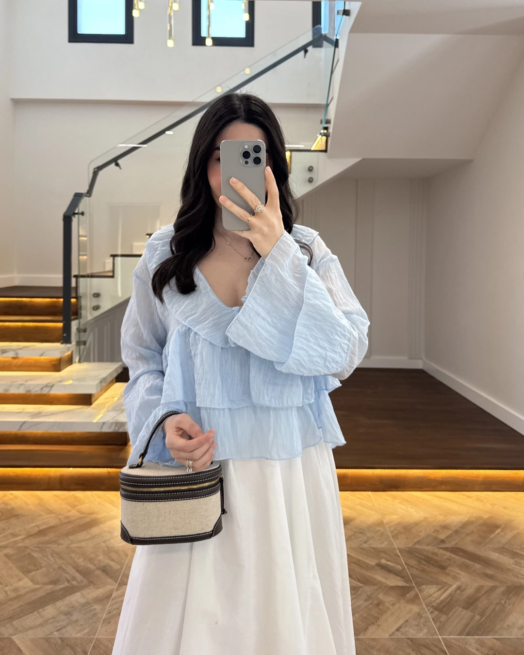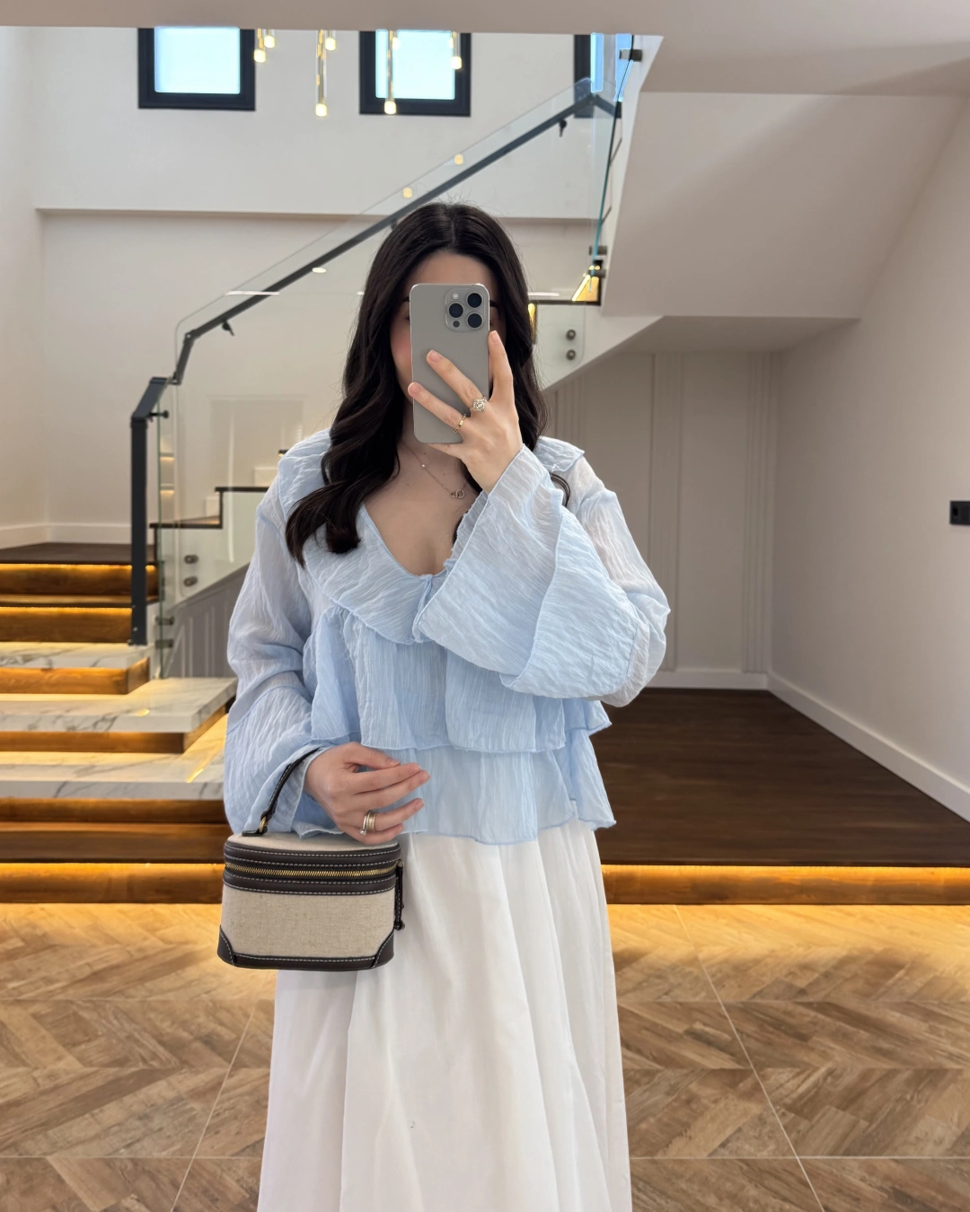 MAVİ UÇUŞAN PELERİN BLUZ -5026