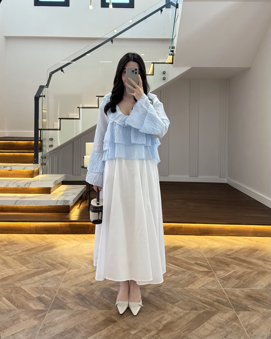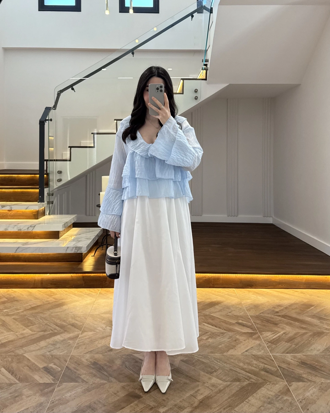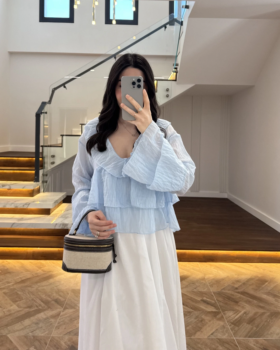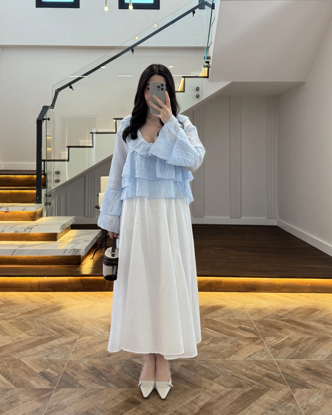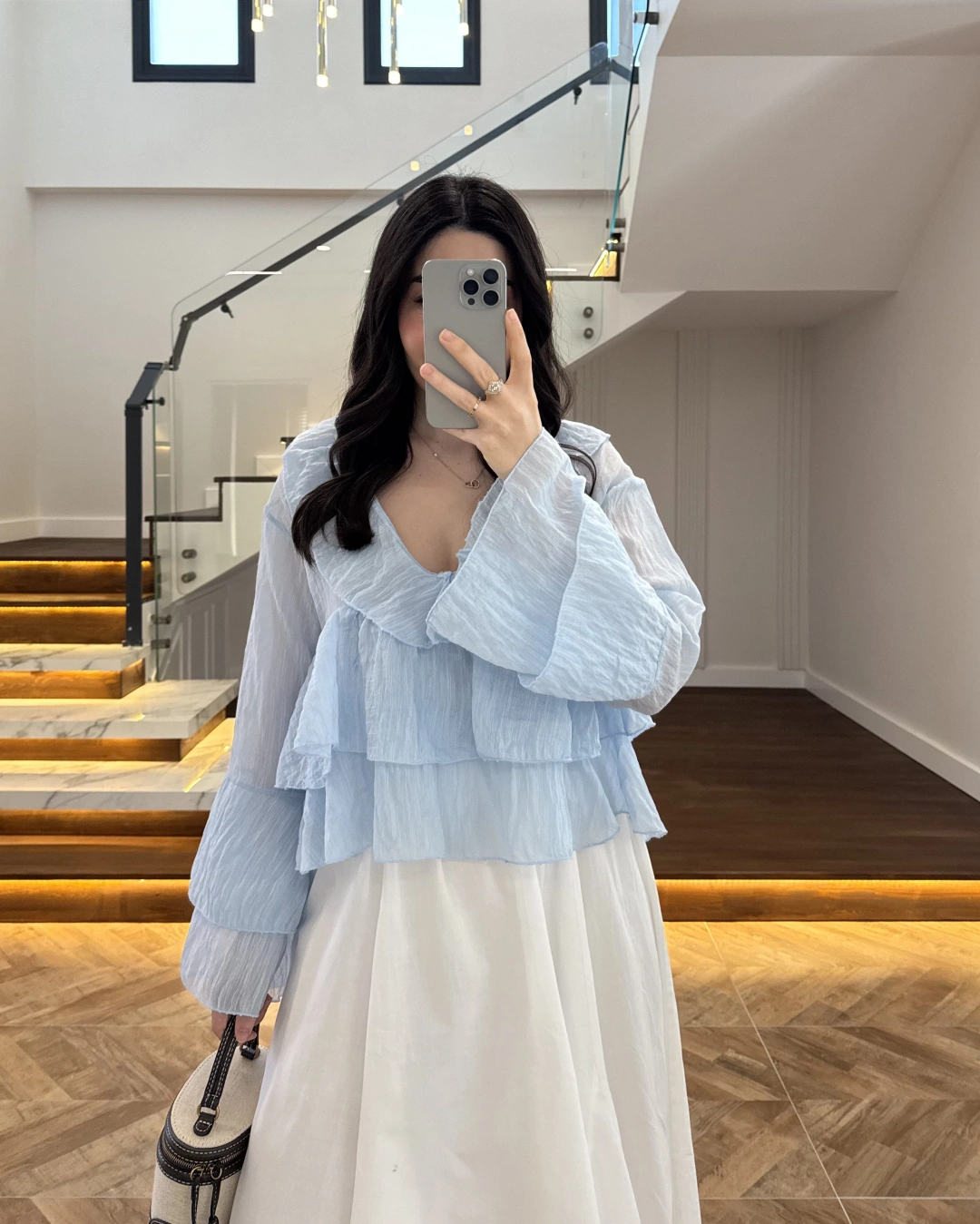 MAVİ UÇUŞAN PELERİN BLUZ -5026