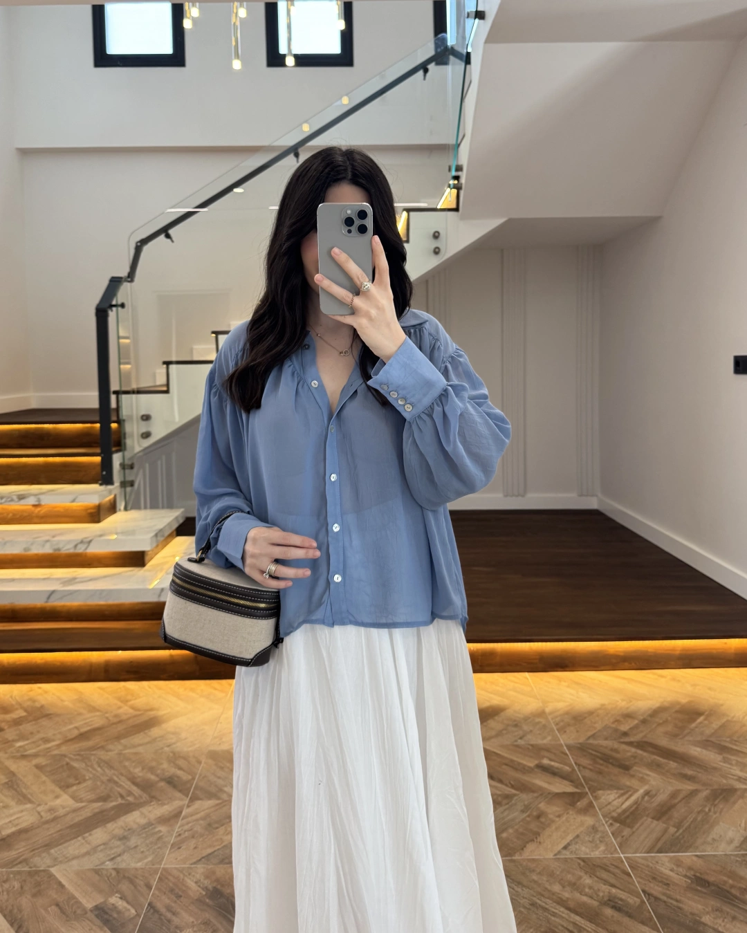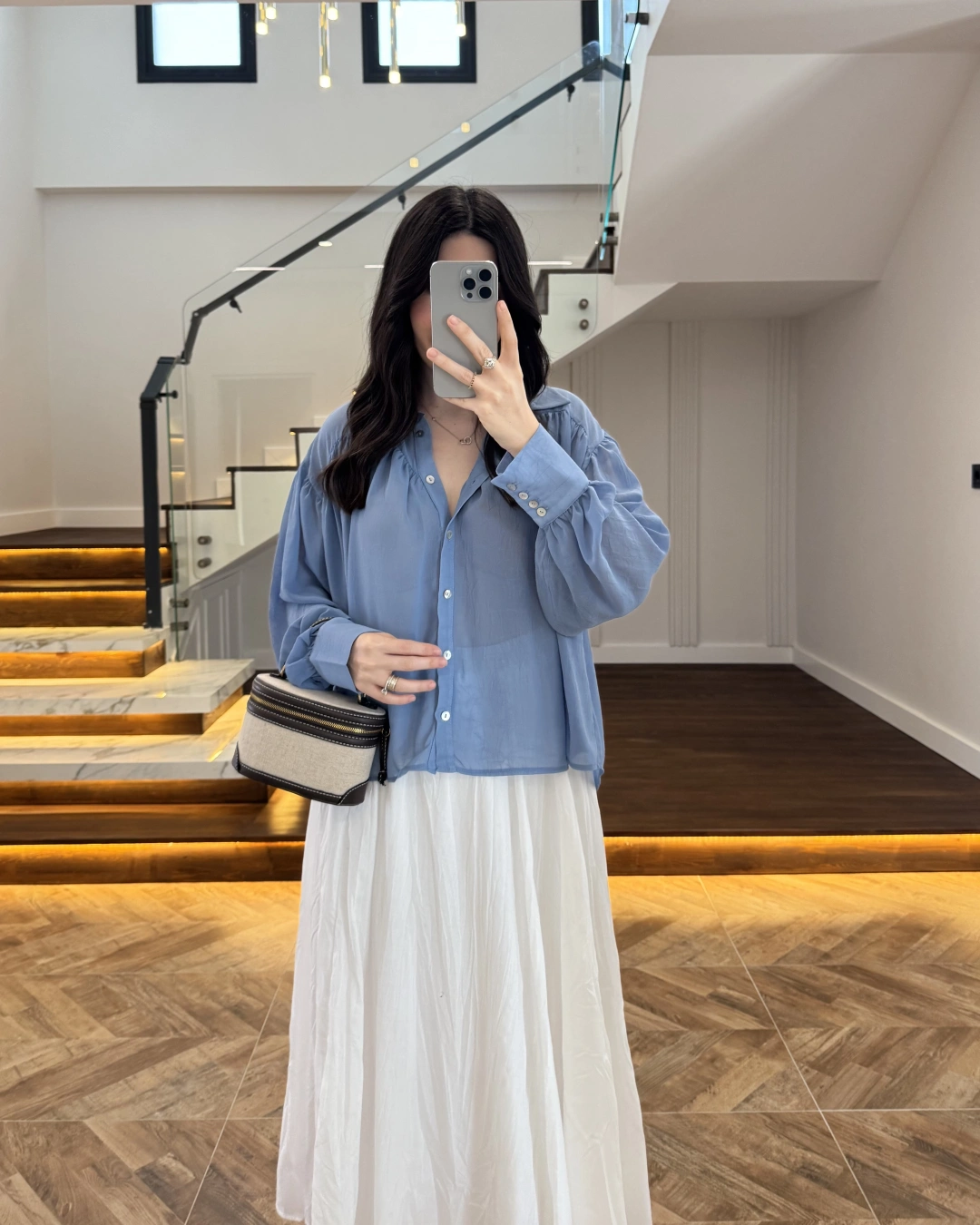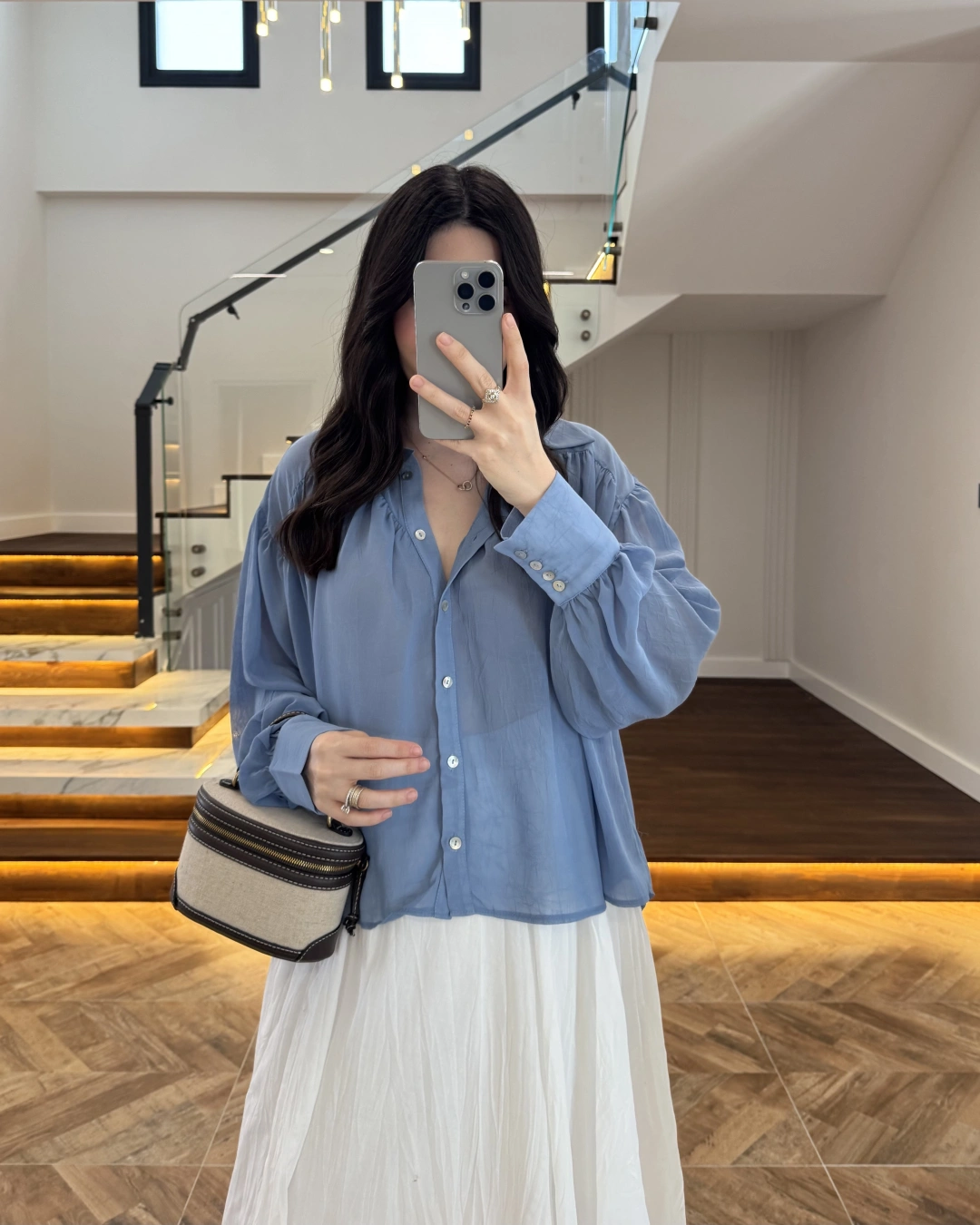 MAVİ TRANSPARAN TENSEL GÖMLEK - 70253