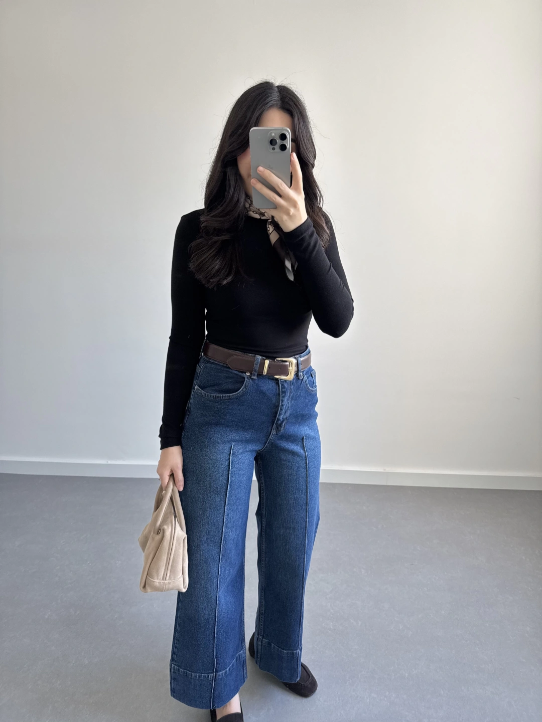 SİYAH BELİ KUŞAKLI PİLELİ MODAL TAKIM