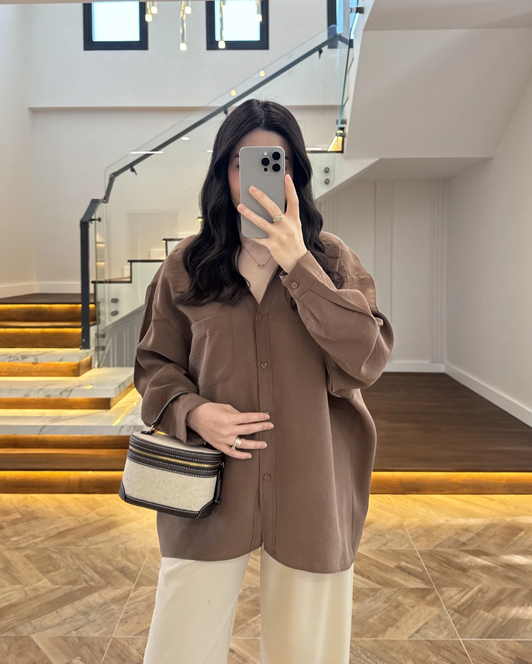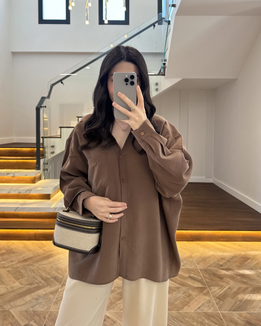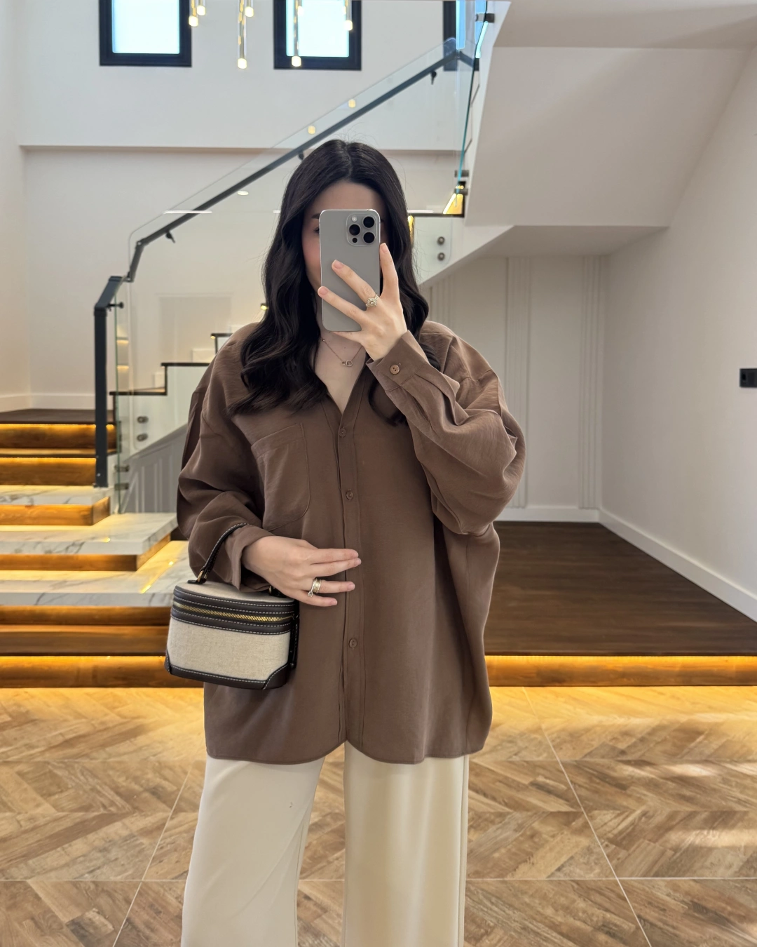KAHVE PİLE DETAY V YAK GÖMLEK-2222