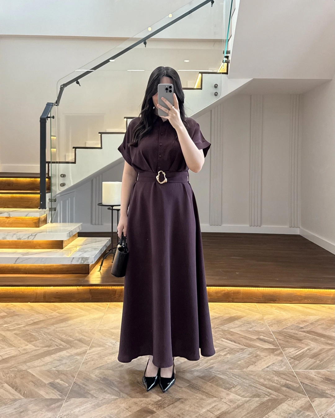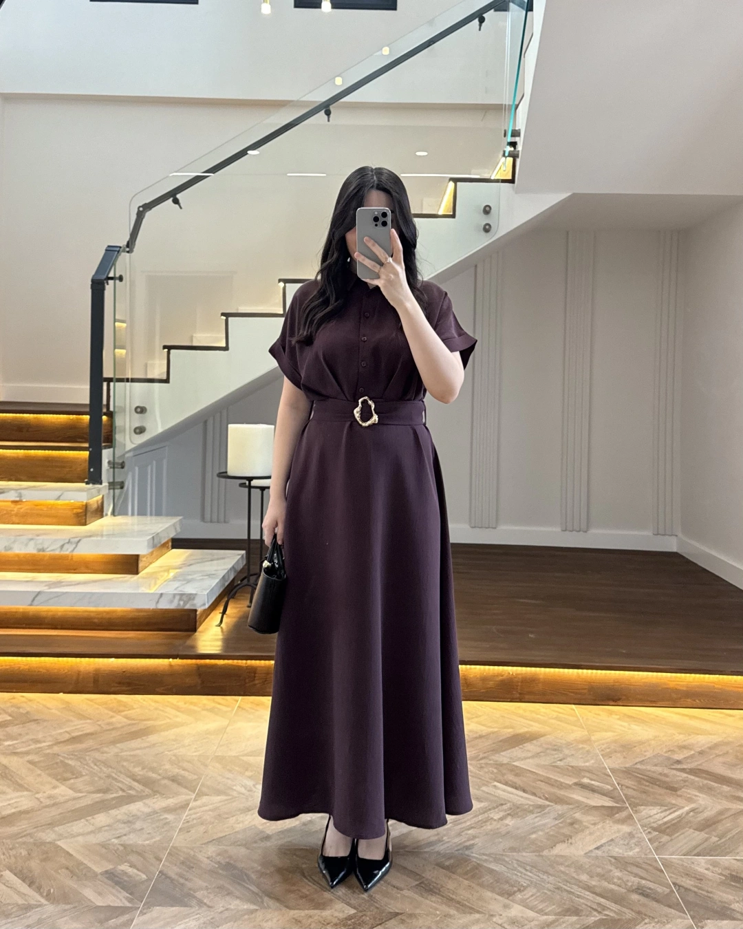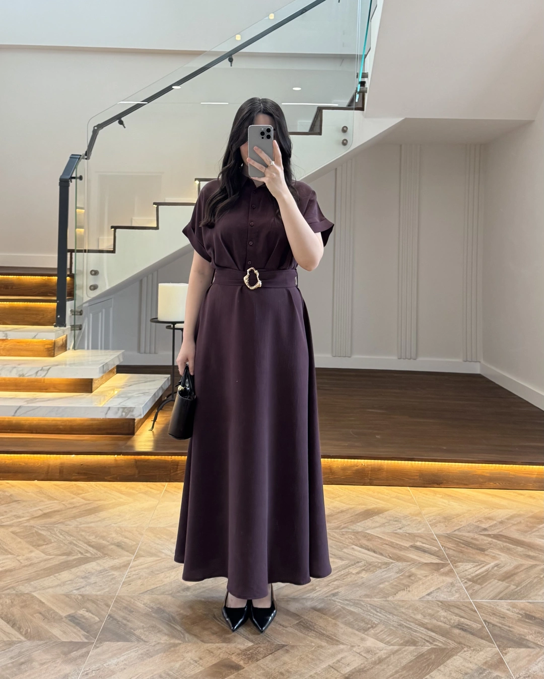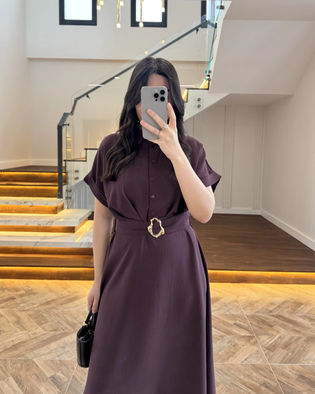 MÜRDÜM GOLD KEMER DETAYLI VİSKON ELBİSE -2376