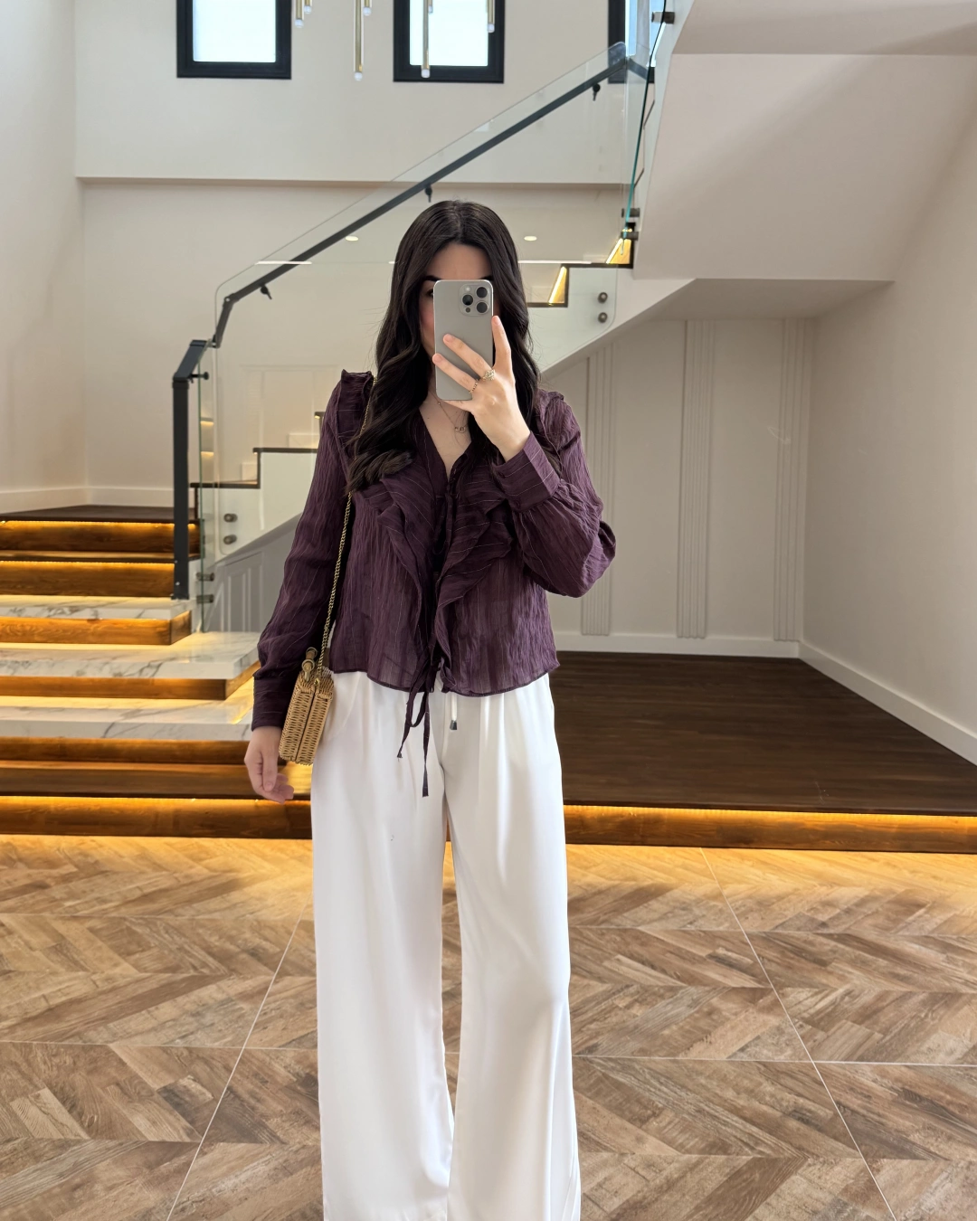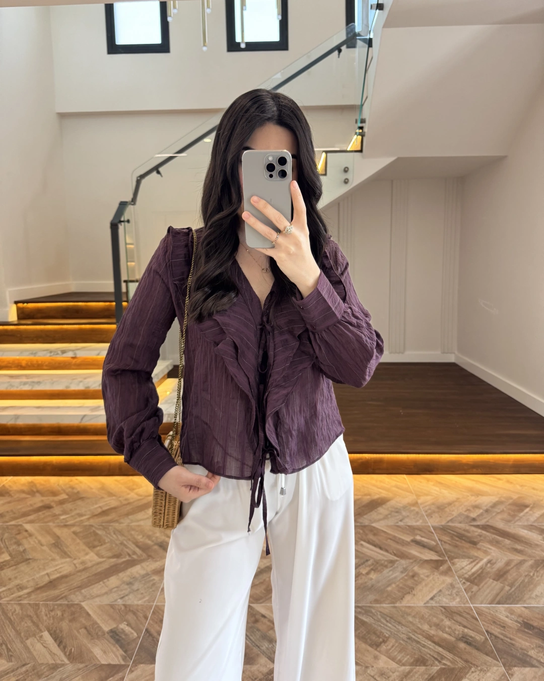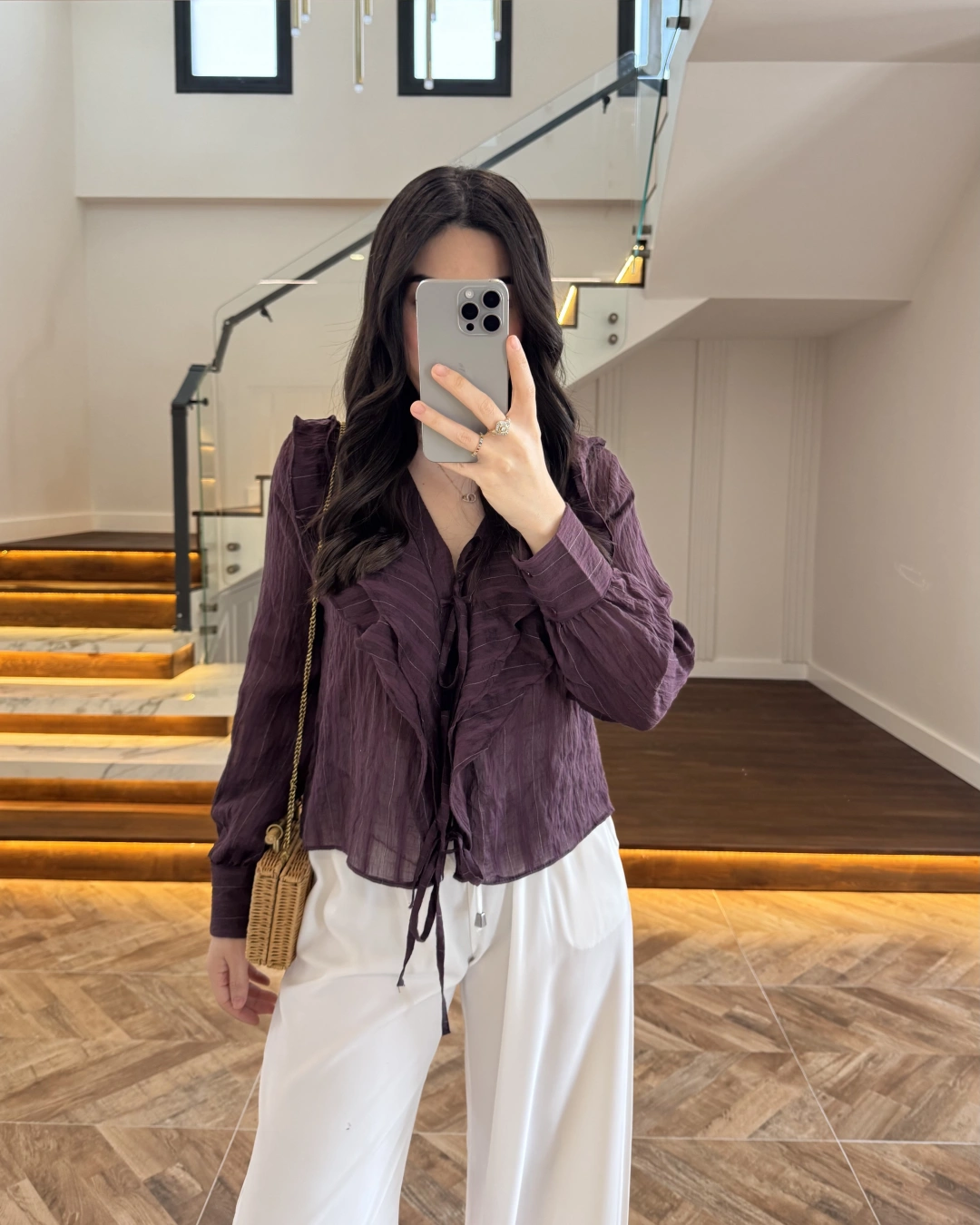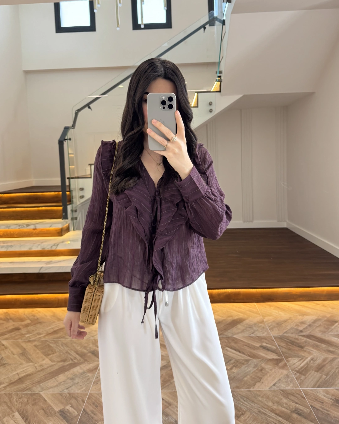 MÜRDÜM ÖNÜ FIRFIR BAĞLAMA DETAYLI BLUZ-1069