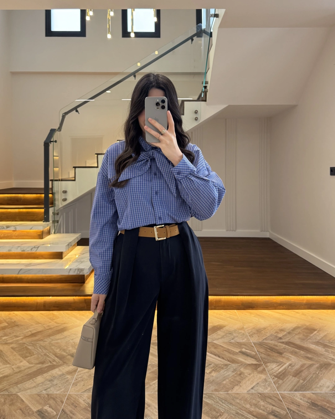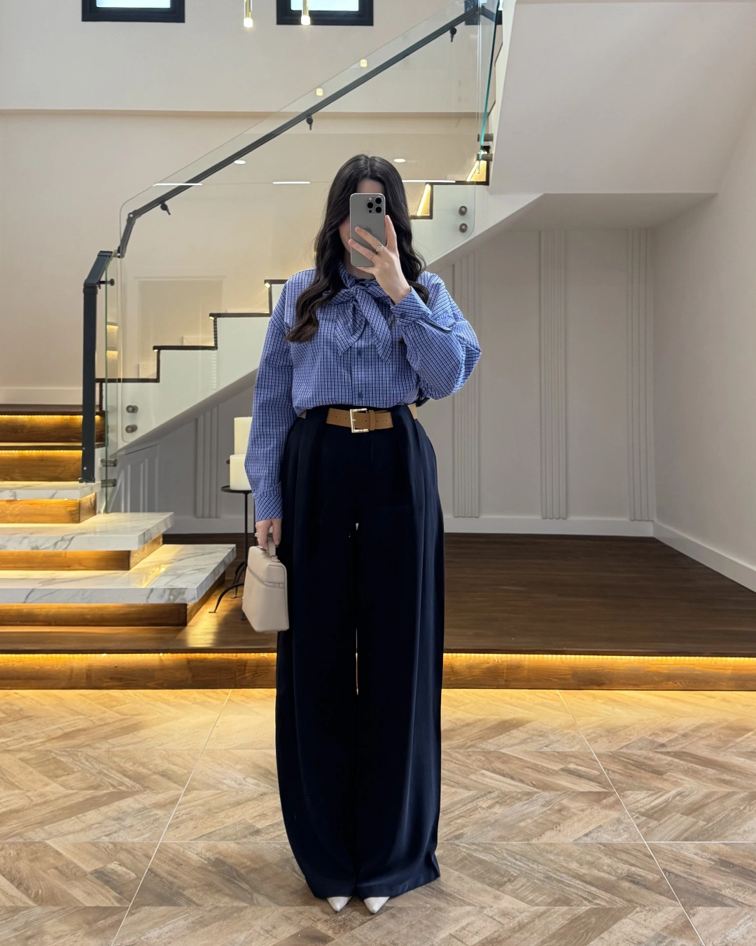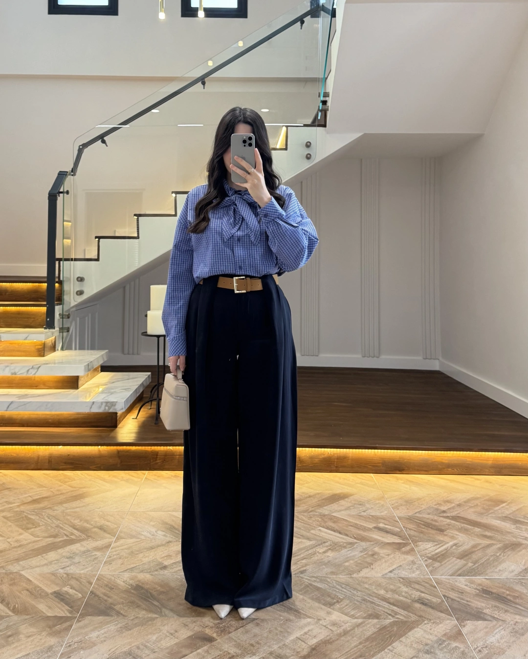 Pantolon yüksek beldir, kemerli ile birlikte gelmektedir