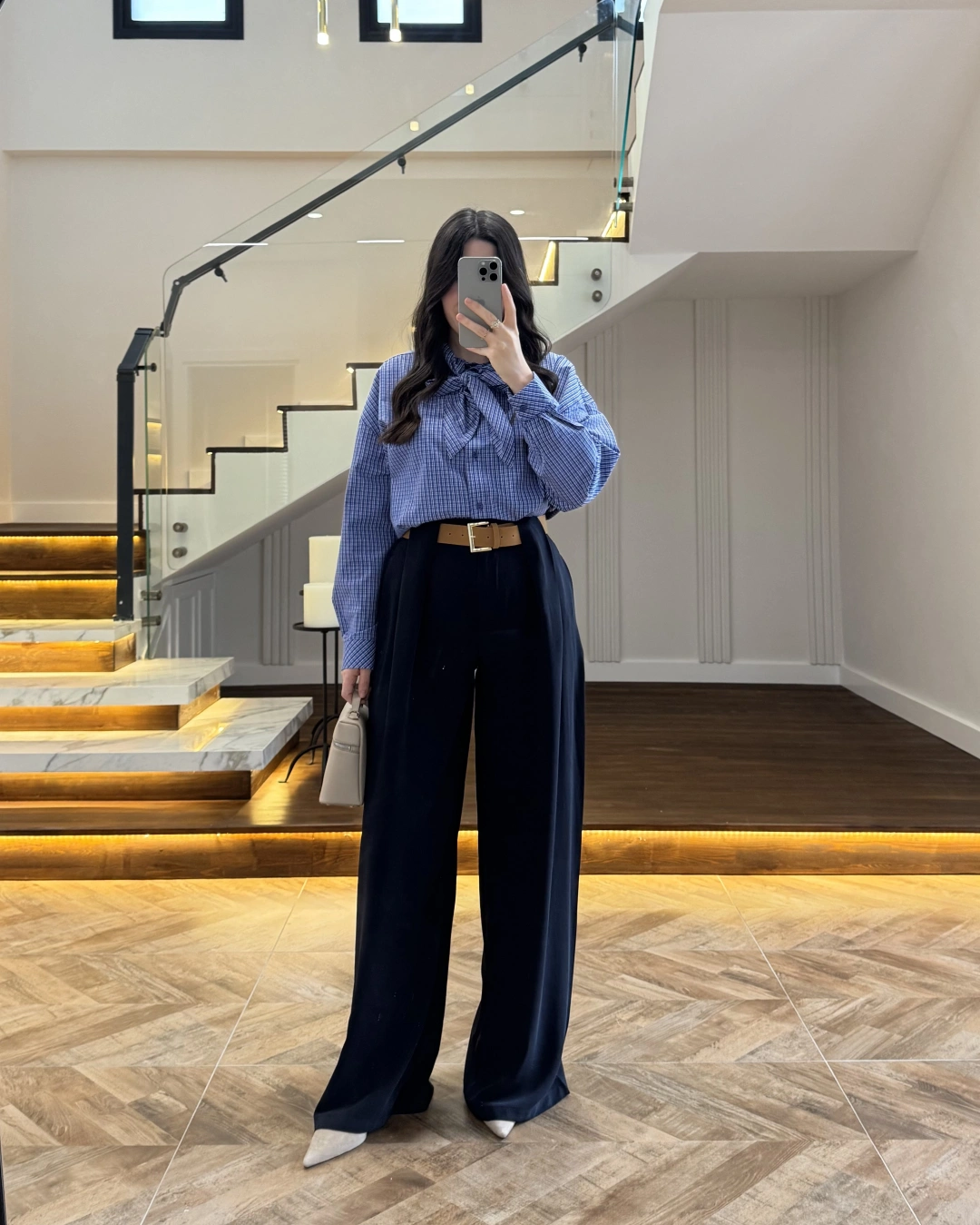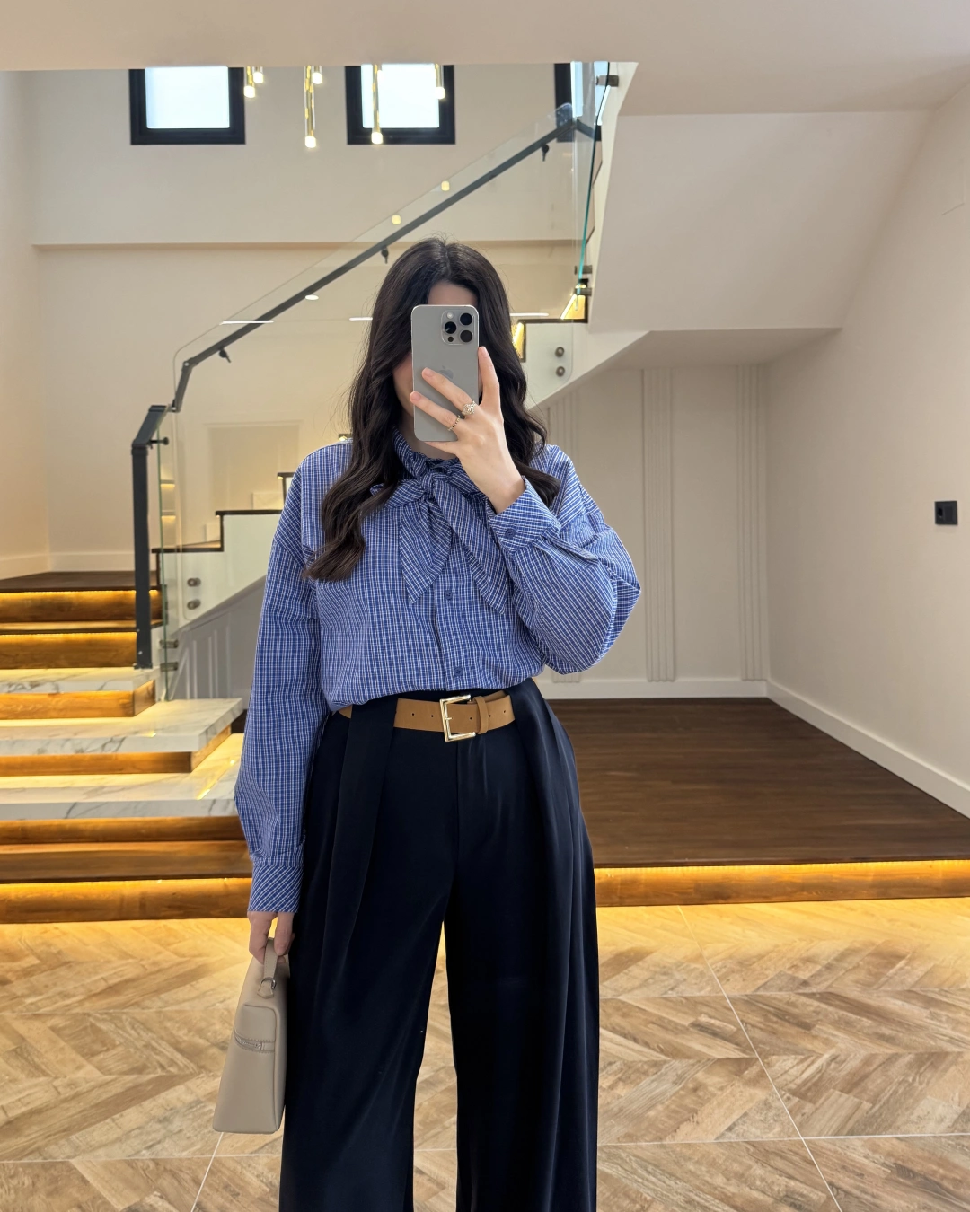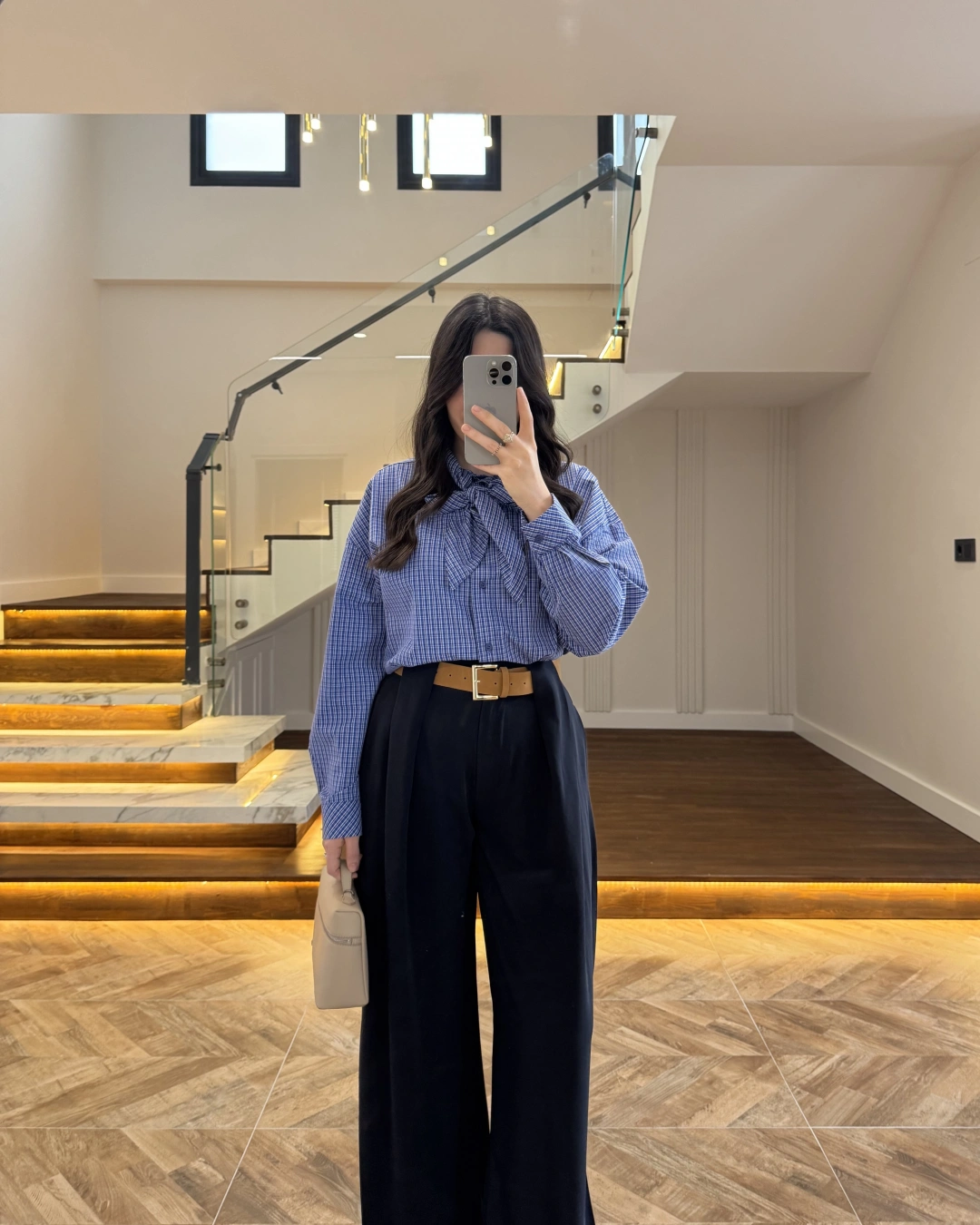 Pantolon yüksek beldir, kemerli ile birlikte gelmektedir