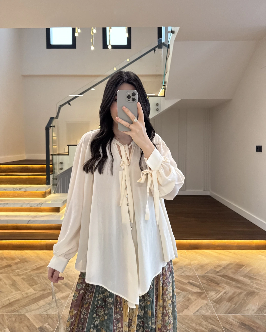 KAHVE DESENLİ SATEN BLUZ -5024