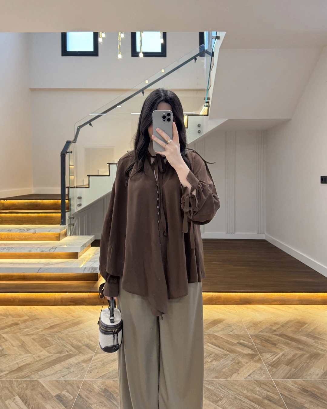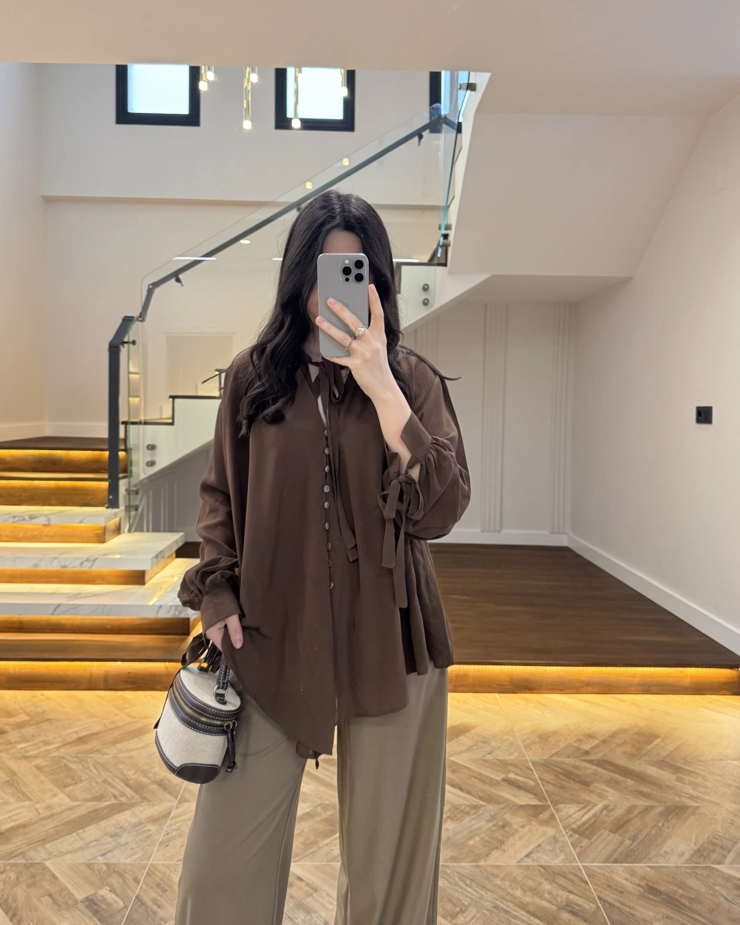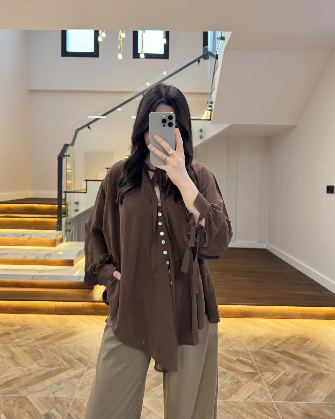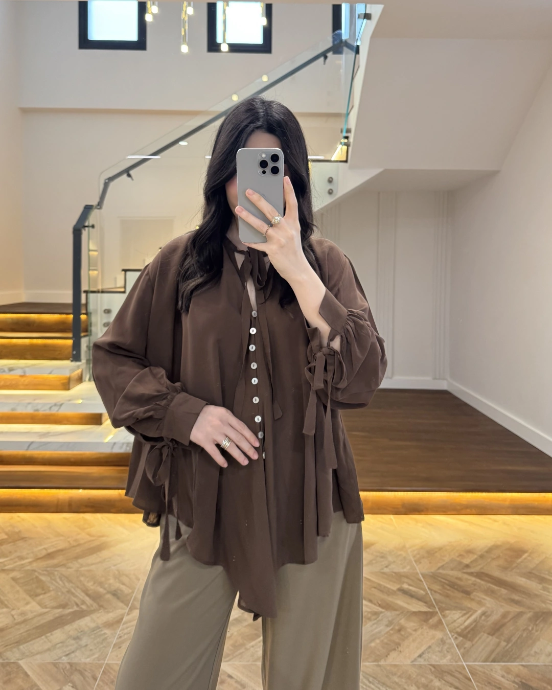 OVERSİZE BAĞLAMA DETAYLI GÖMLEK KAHVE-4988
