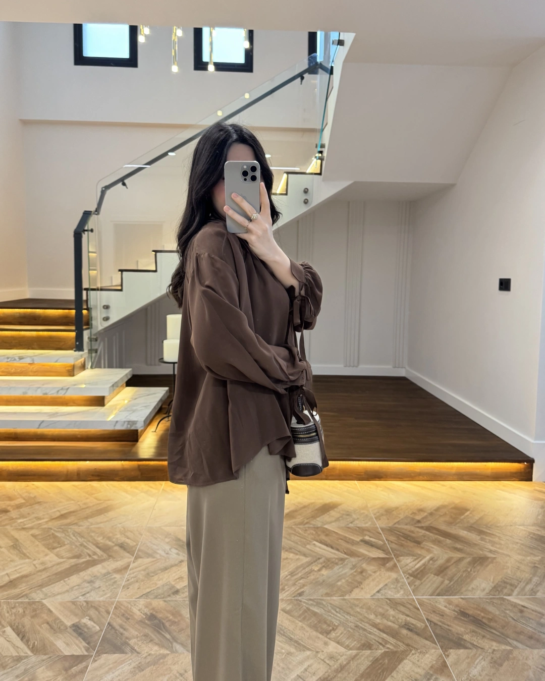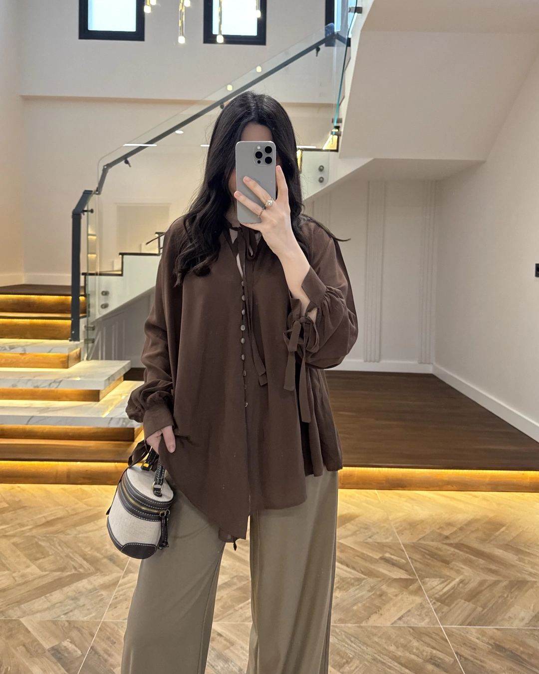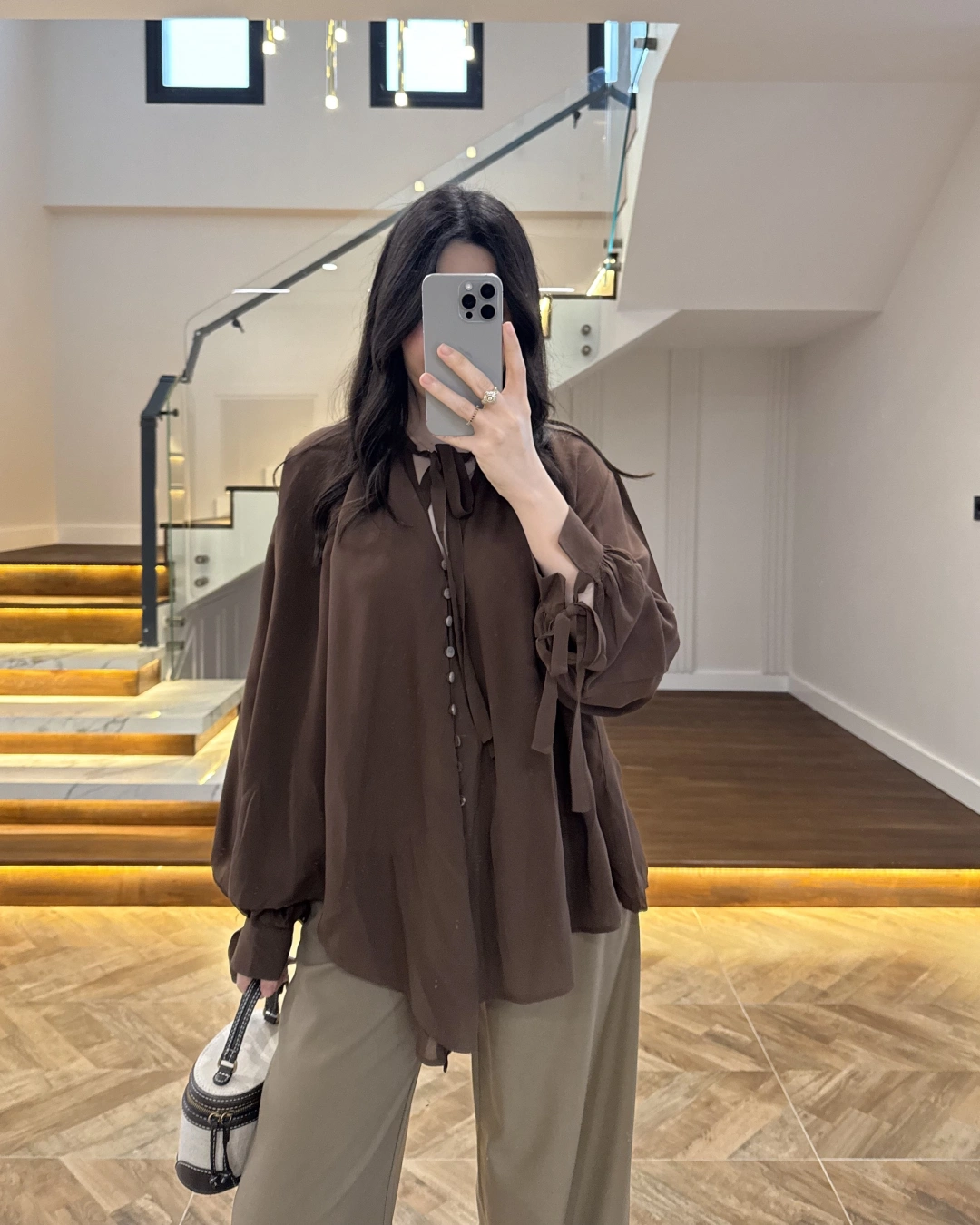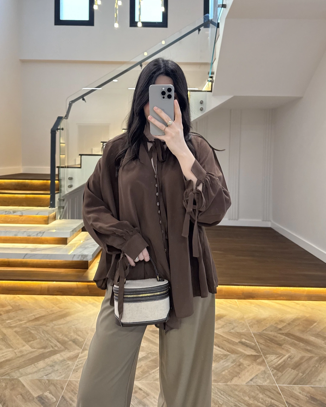 OVERSİZE BAĞLAMA DETAYLI GÖMLEK KAHVE-4988