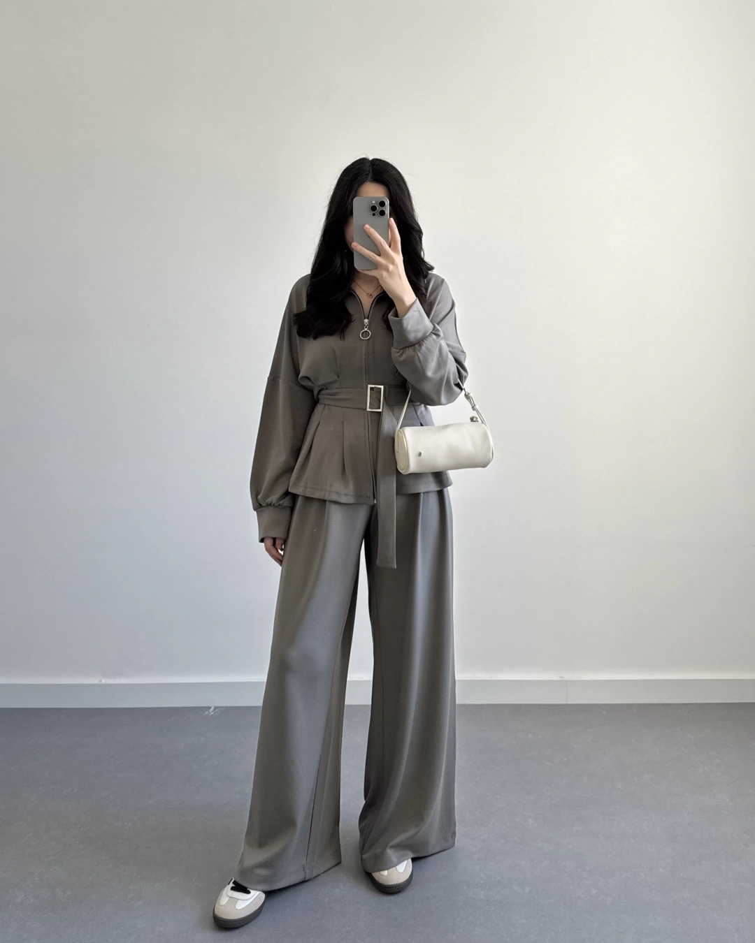 HAKİ GENİŞ PAÇA OVERSİZE TAKIM