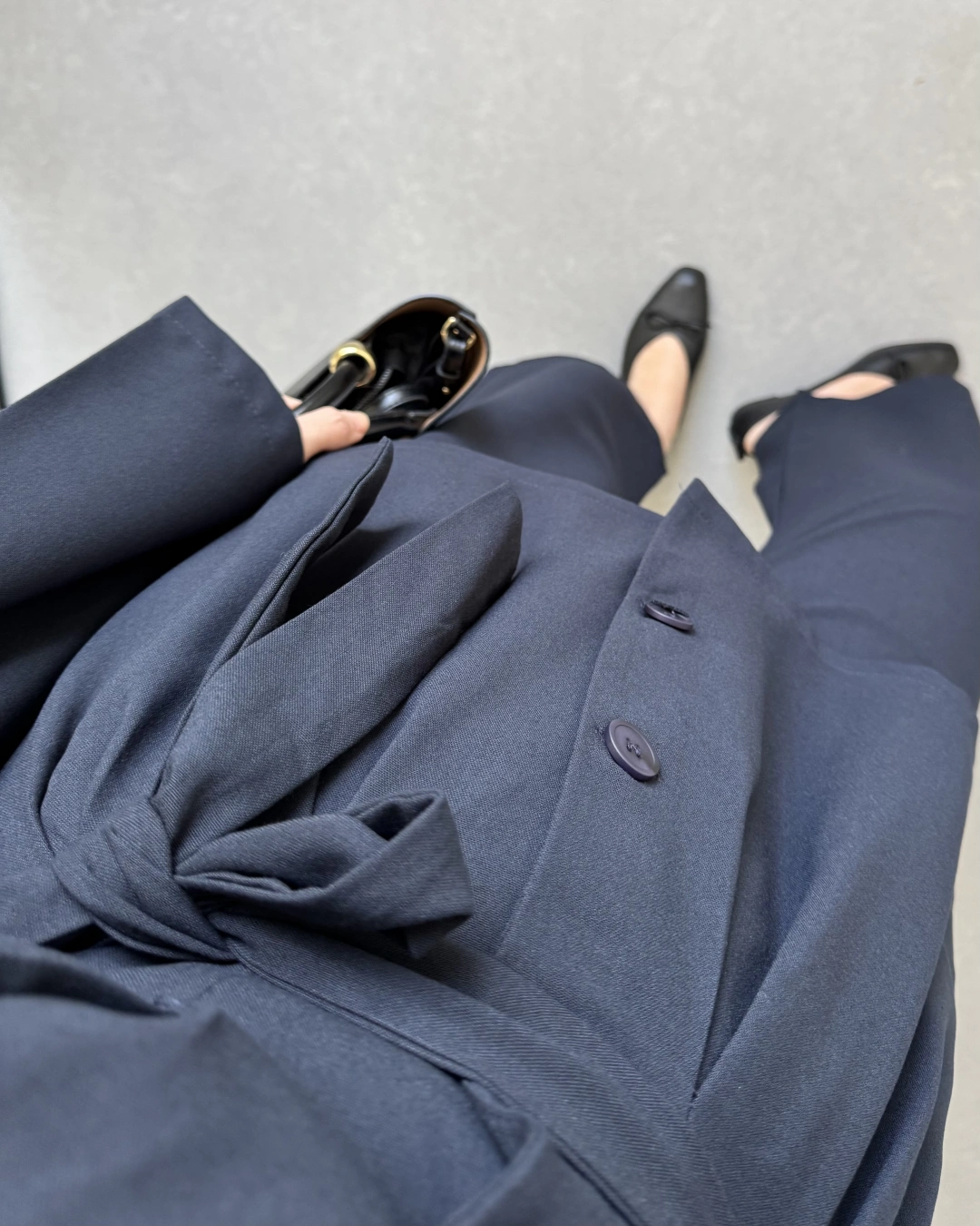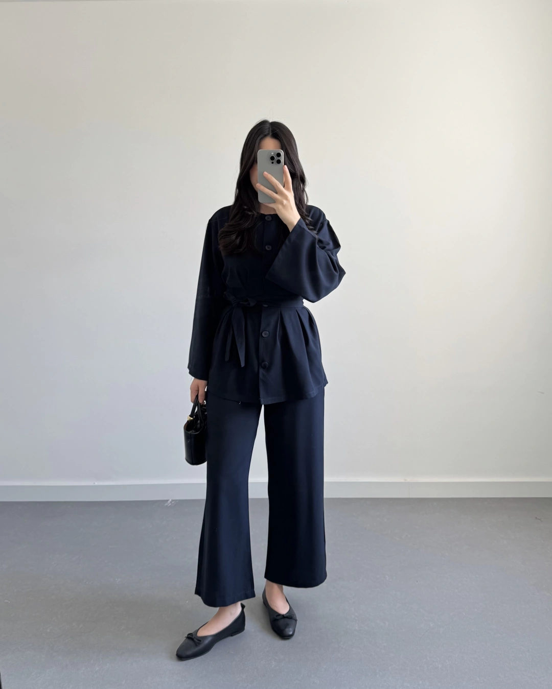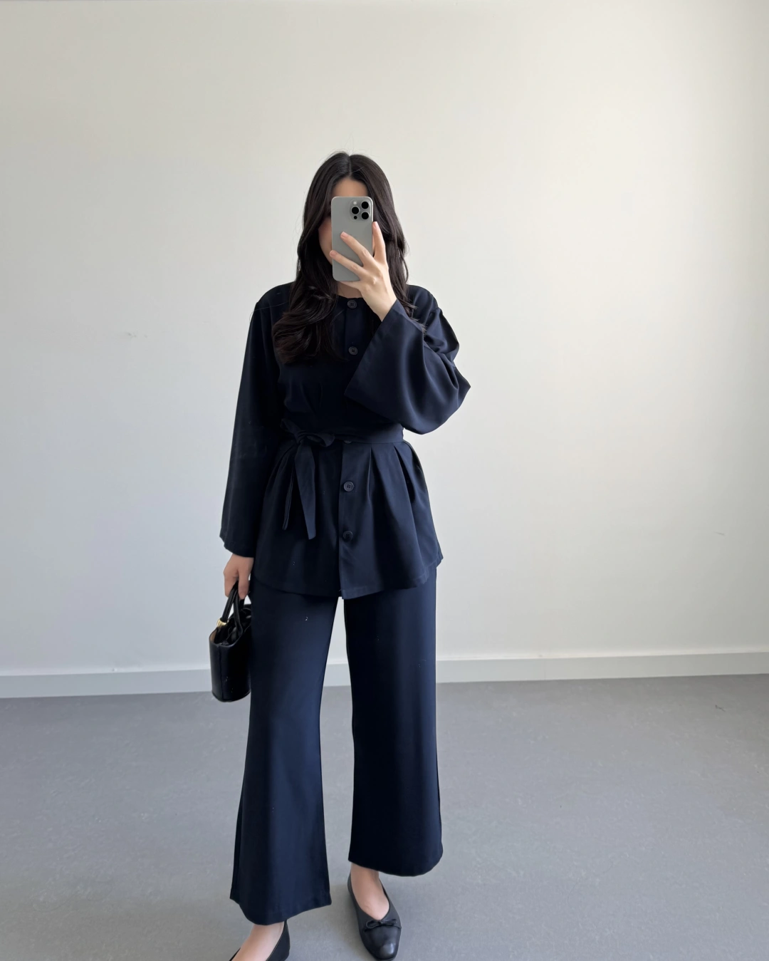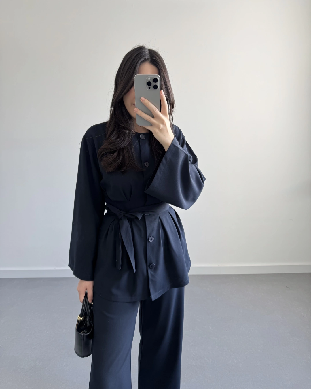PİLE DETAYLI KUŞAKLI TAKIM LACİVERT