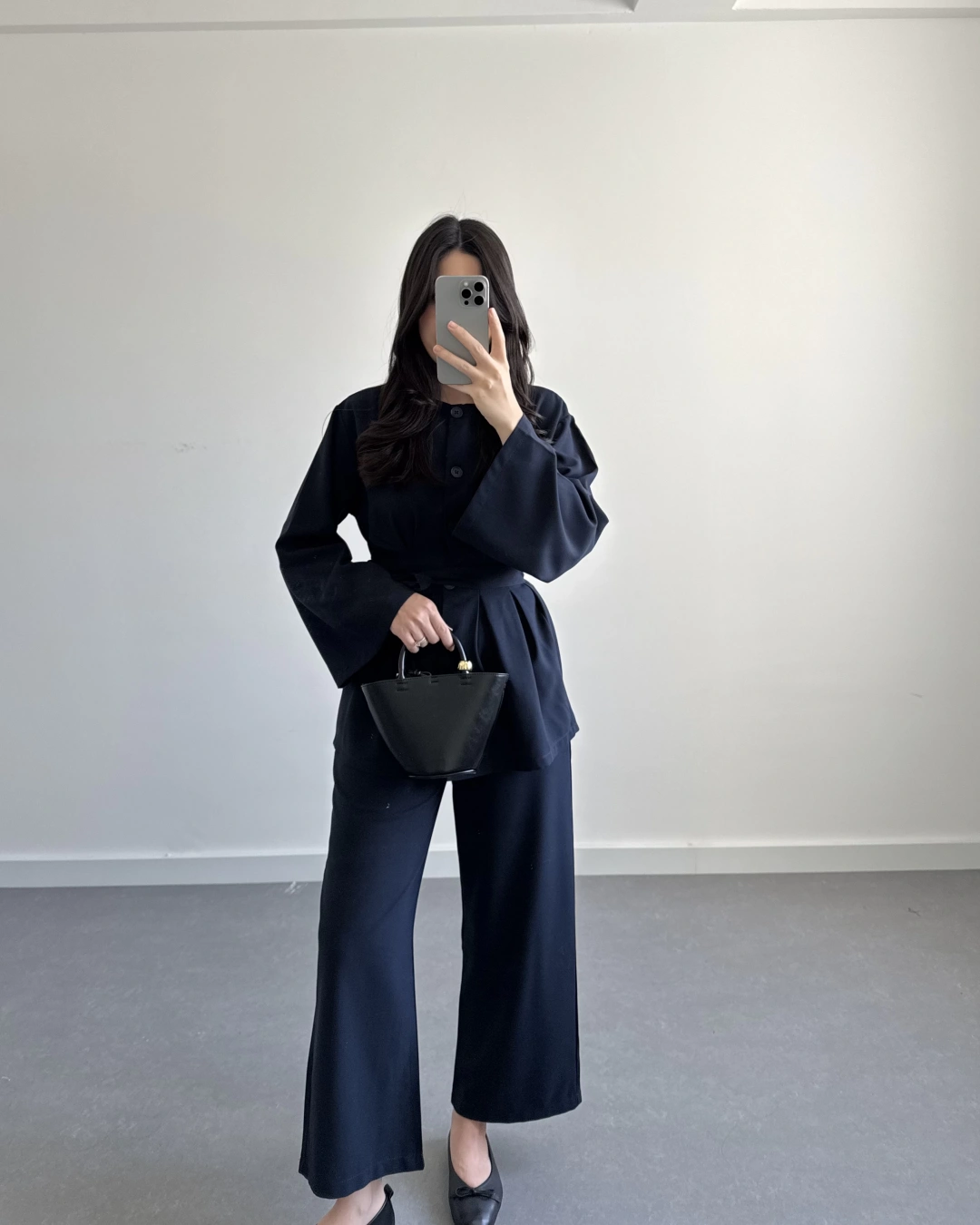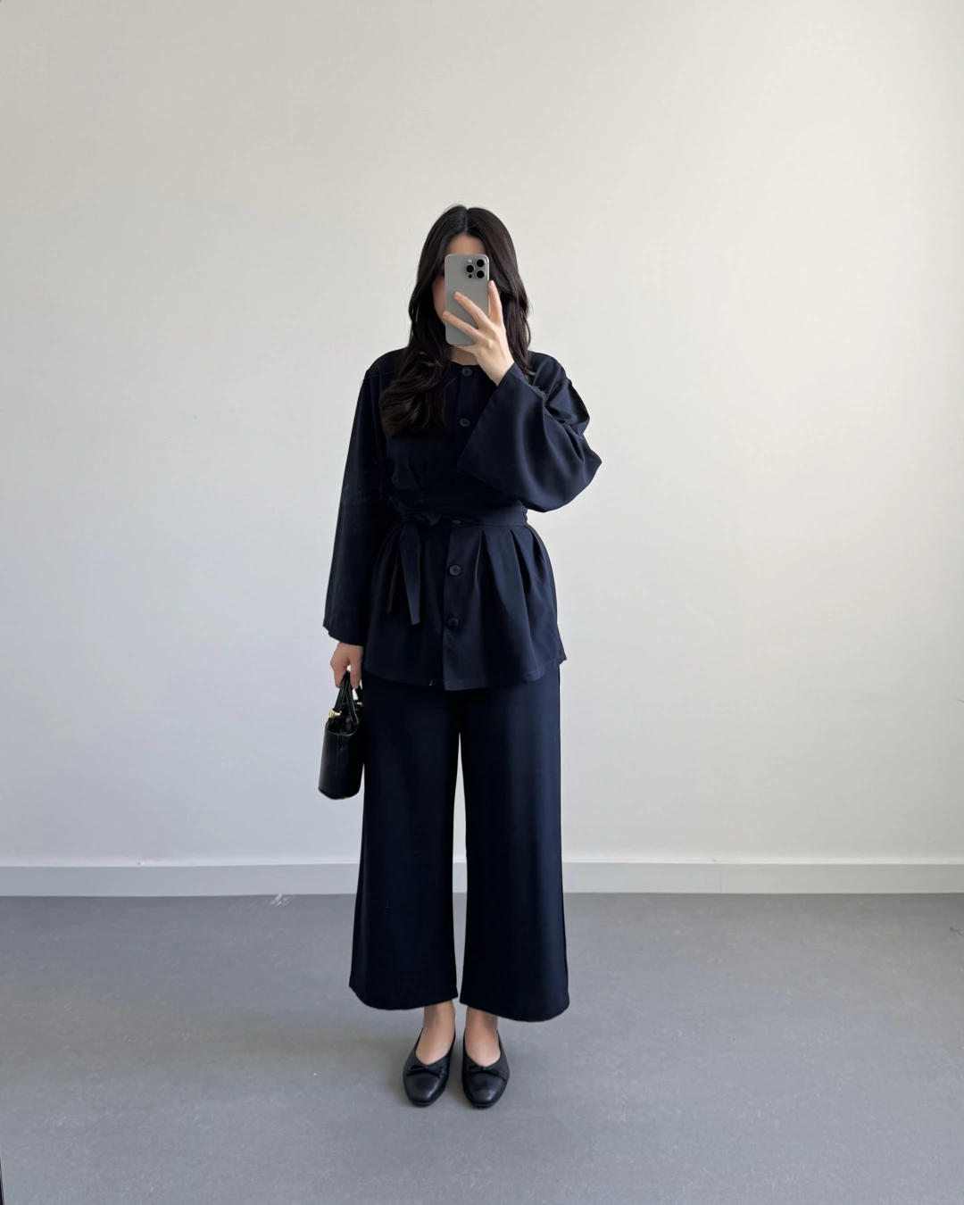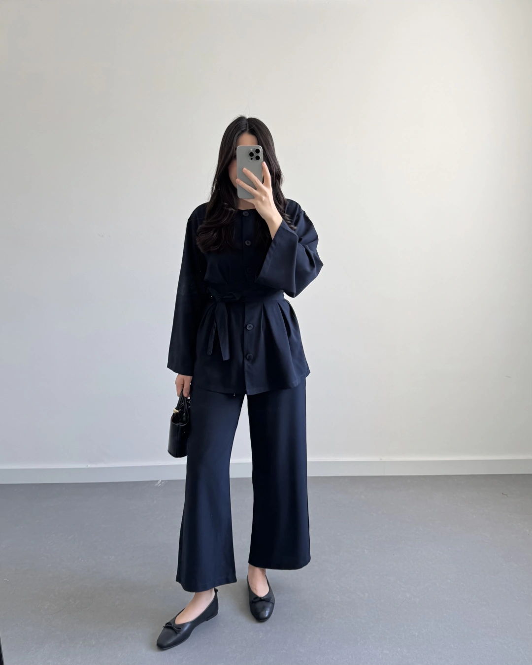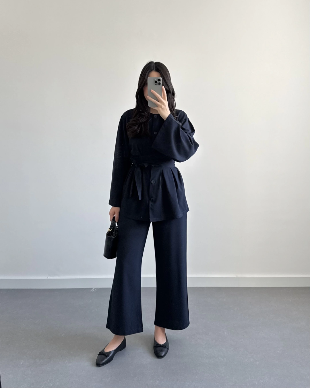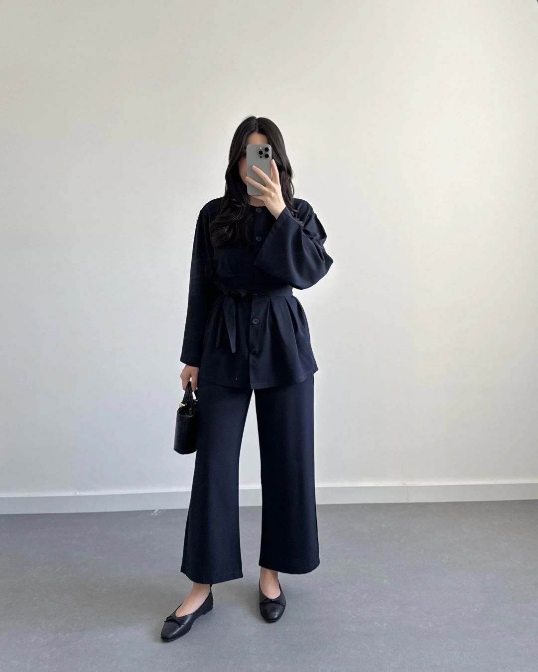 SİYAH BELİ KUŞAKLI PİLELİ MODAL TAKIM
