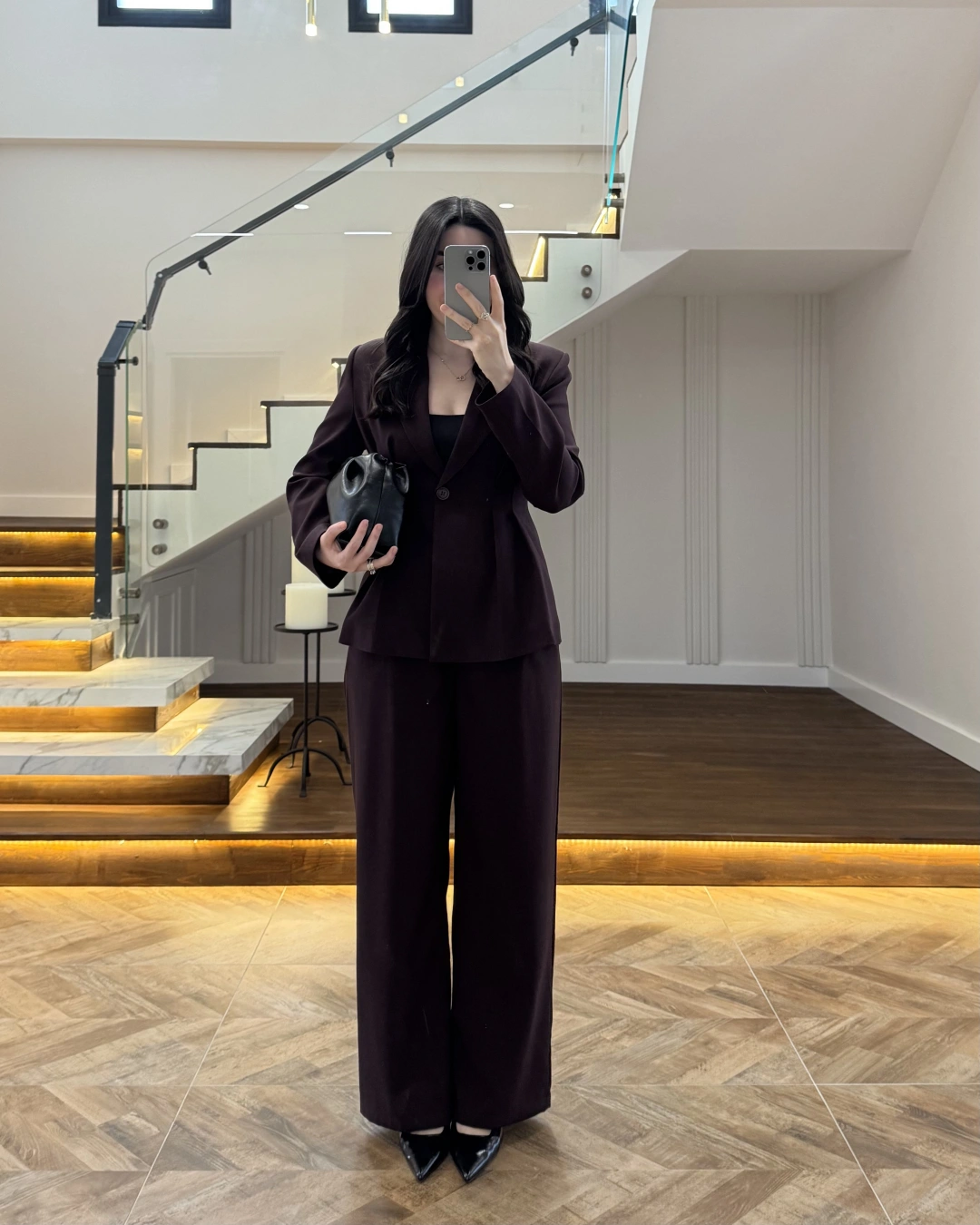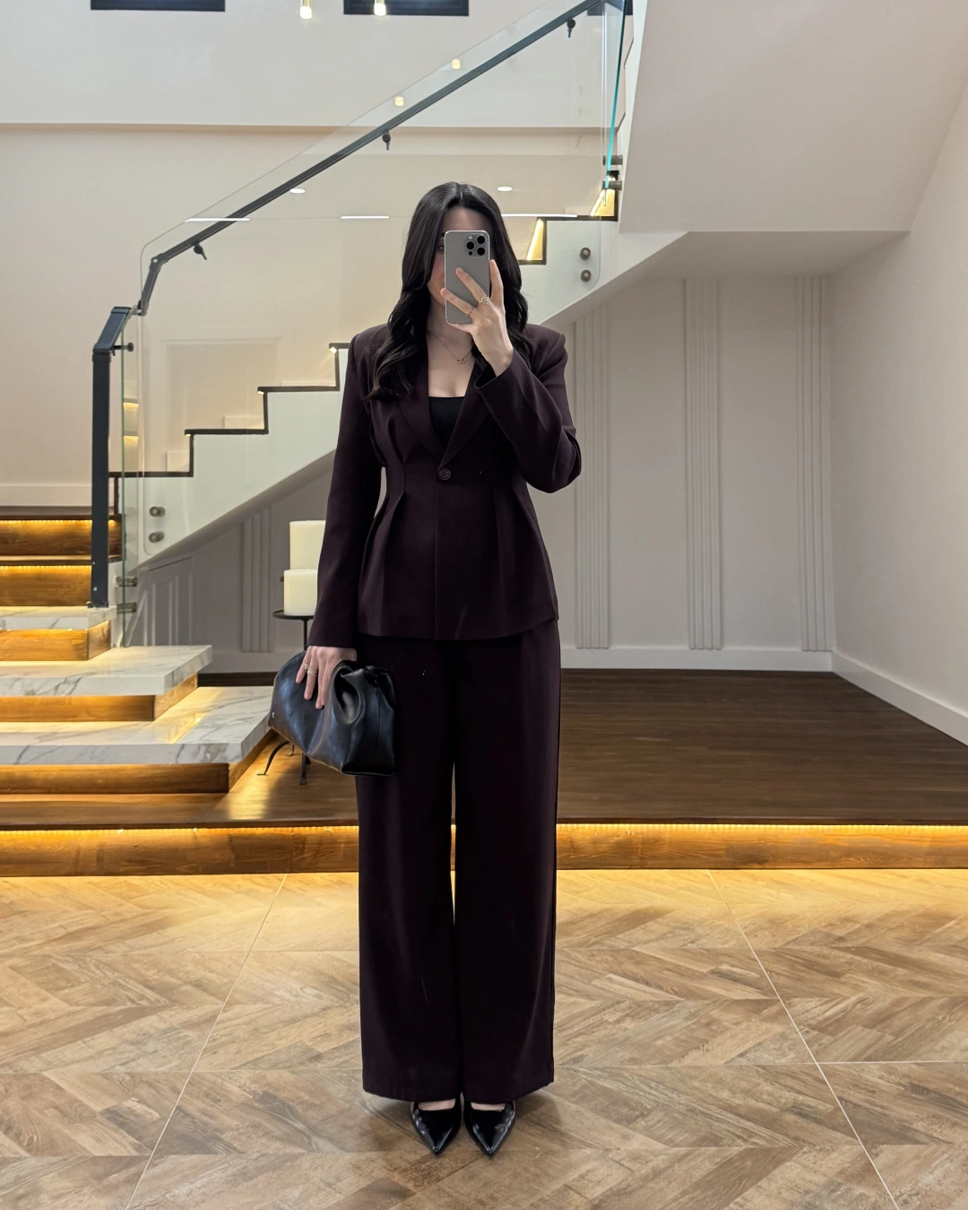 KAHVE PELERİN DETAY TAKIM -8885