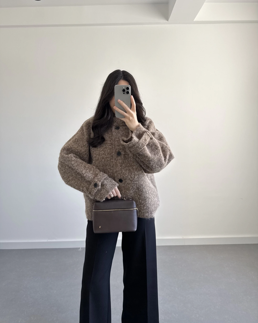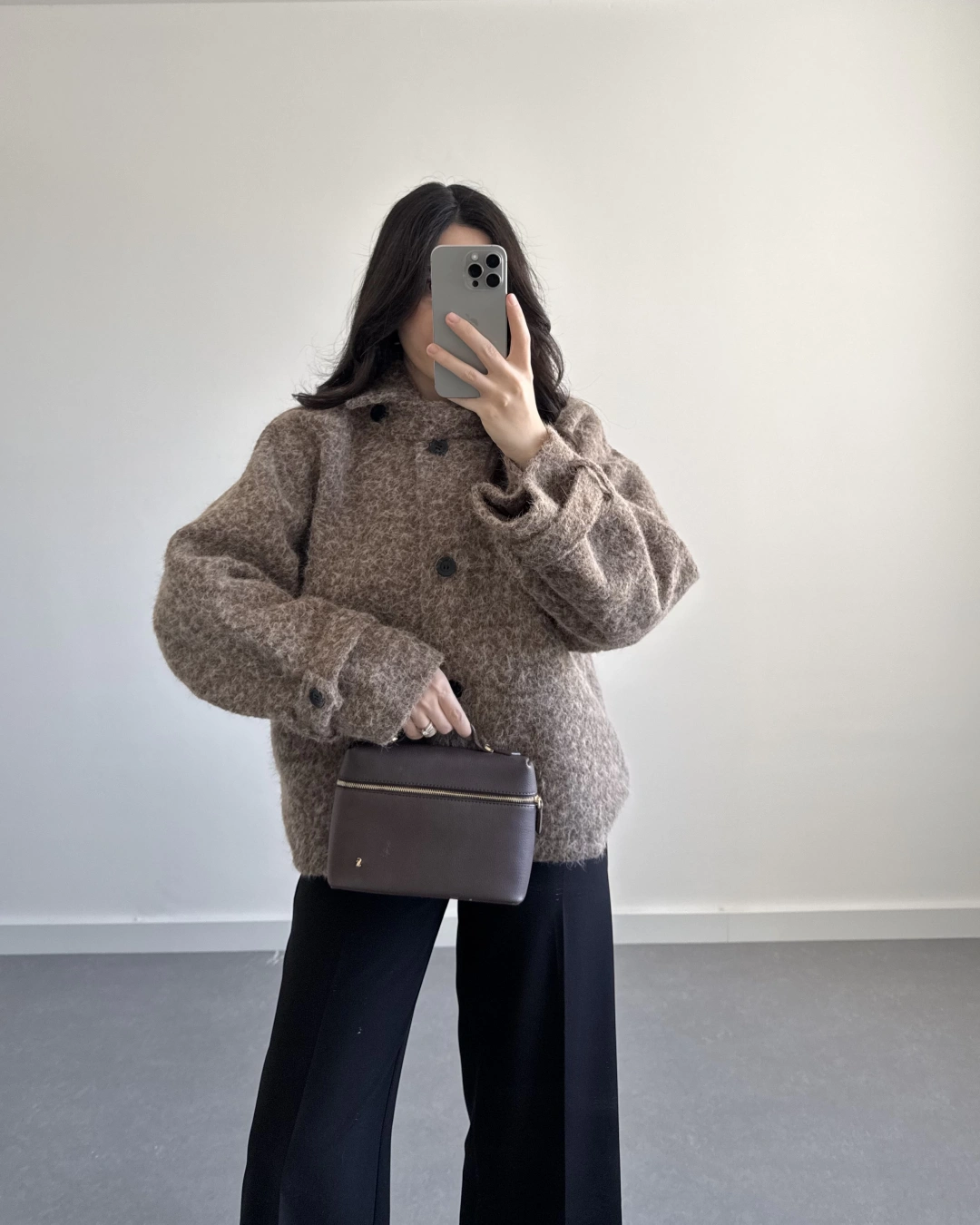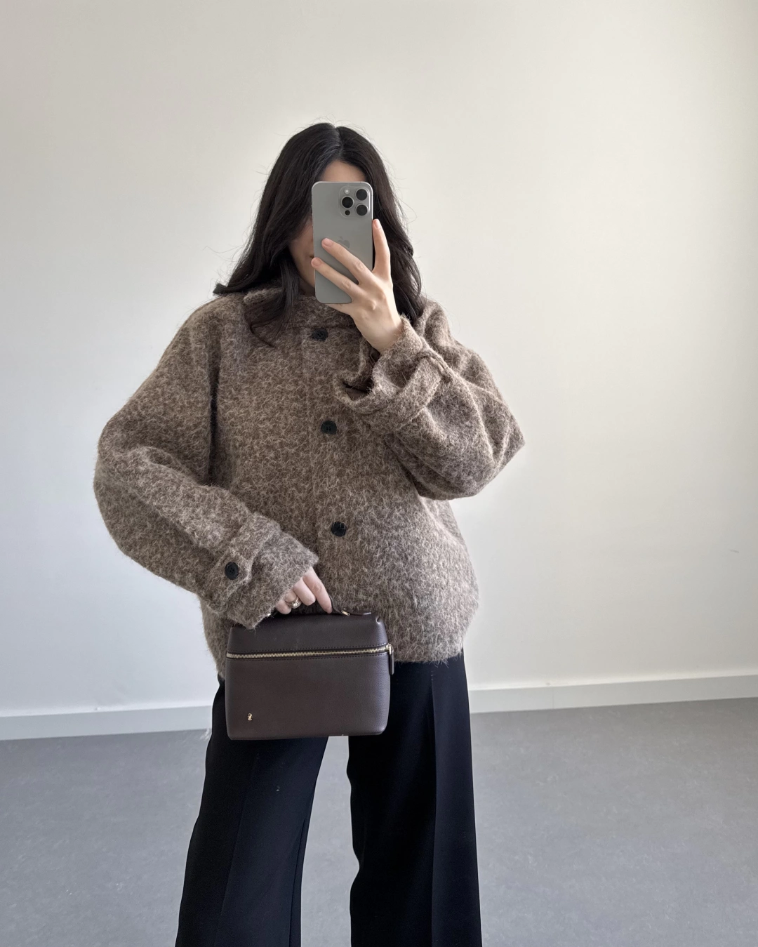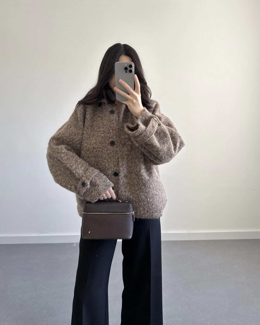 PREMİUM DÜĞMELİ KAŞE CEKET KAHVE