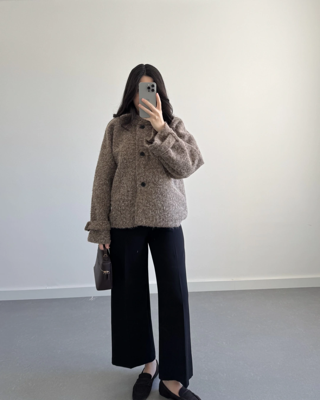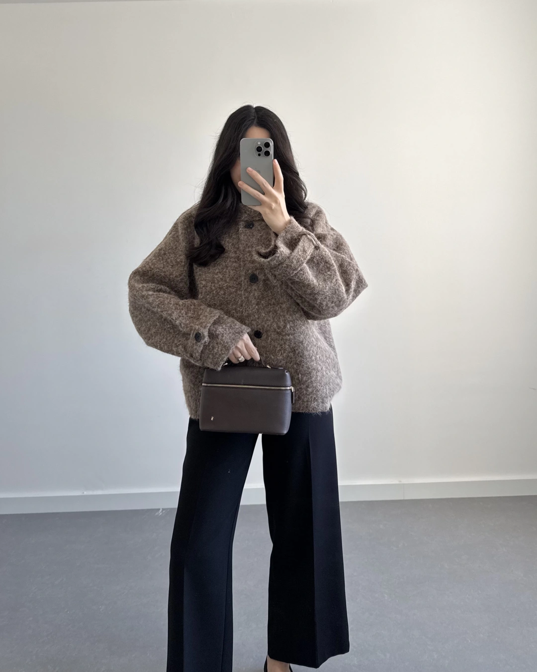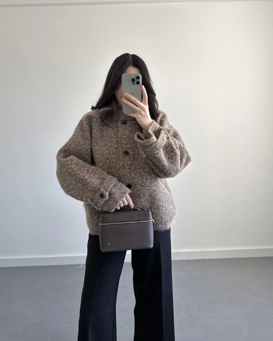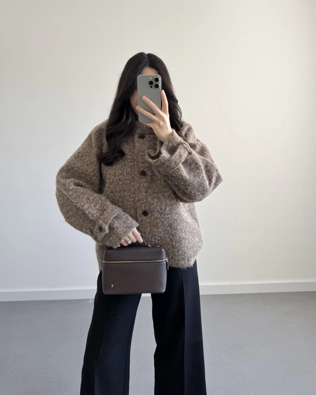 PREMİUM DÜĞMELİ KAŞE CEKET KAHVE
