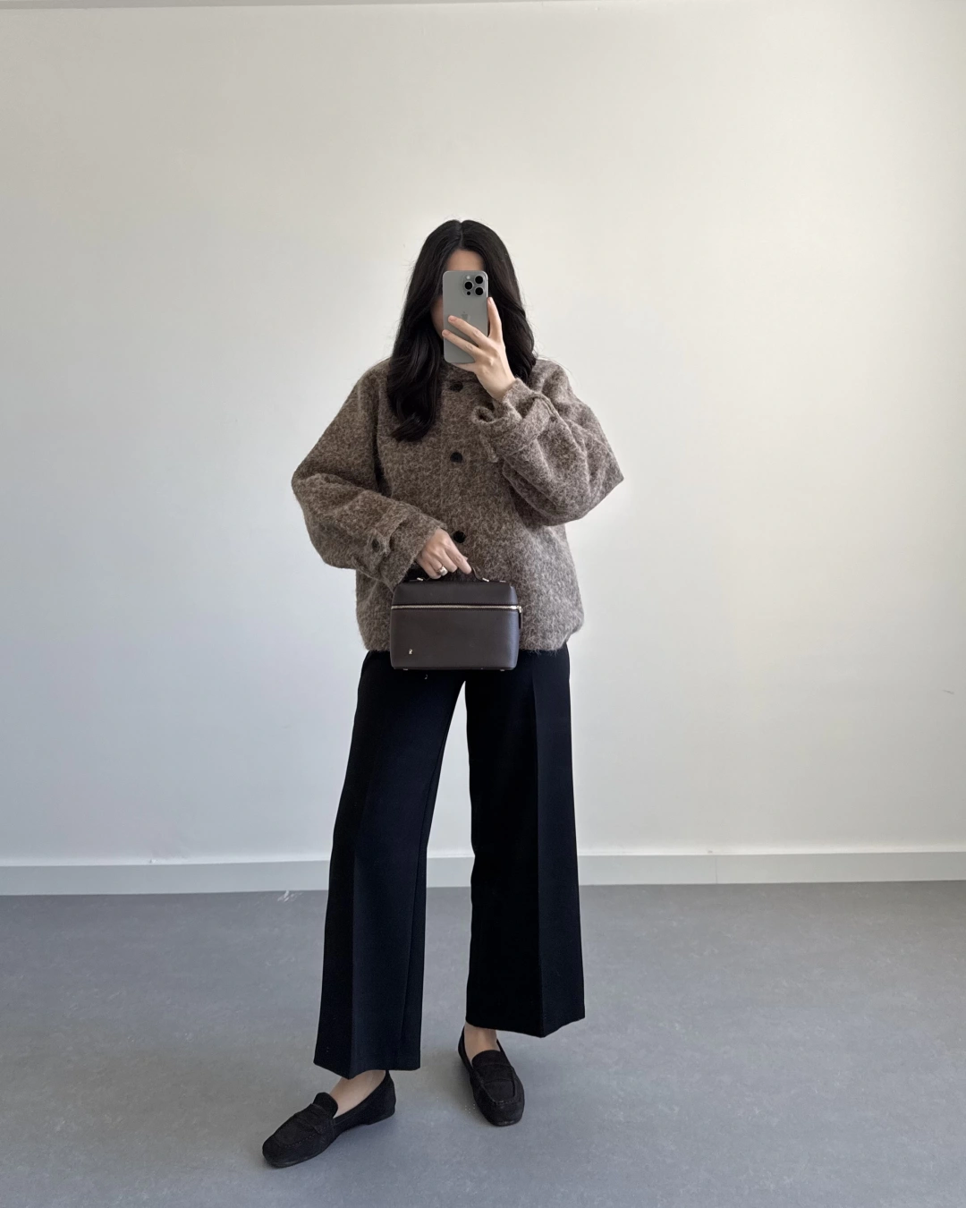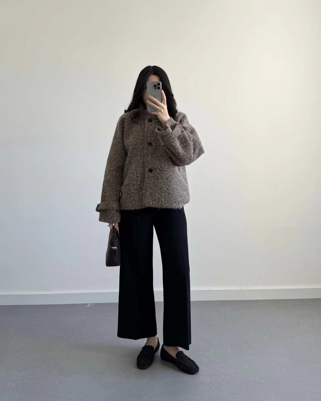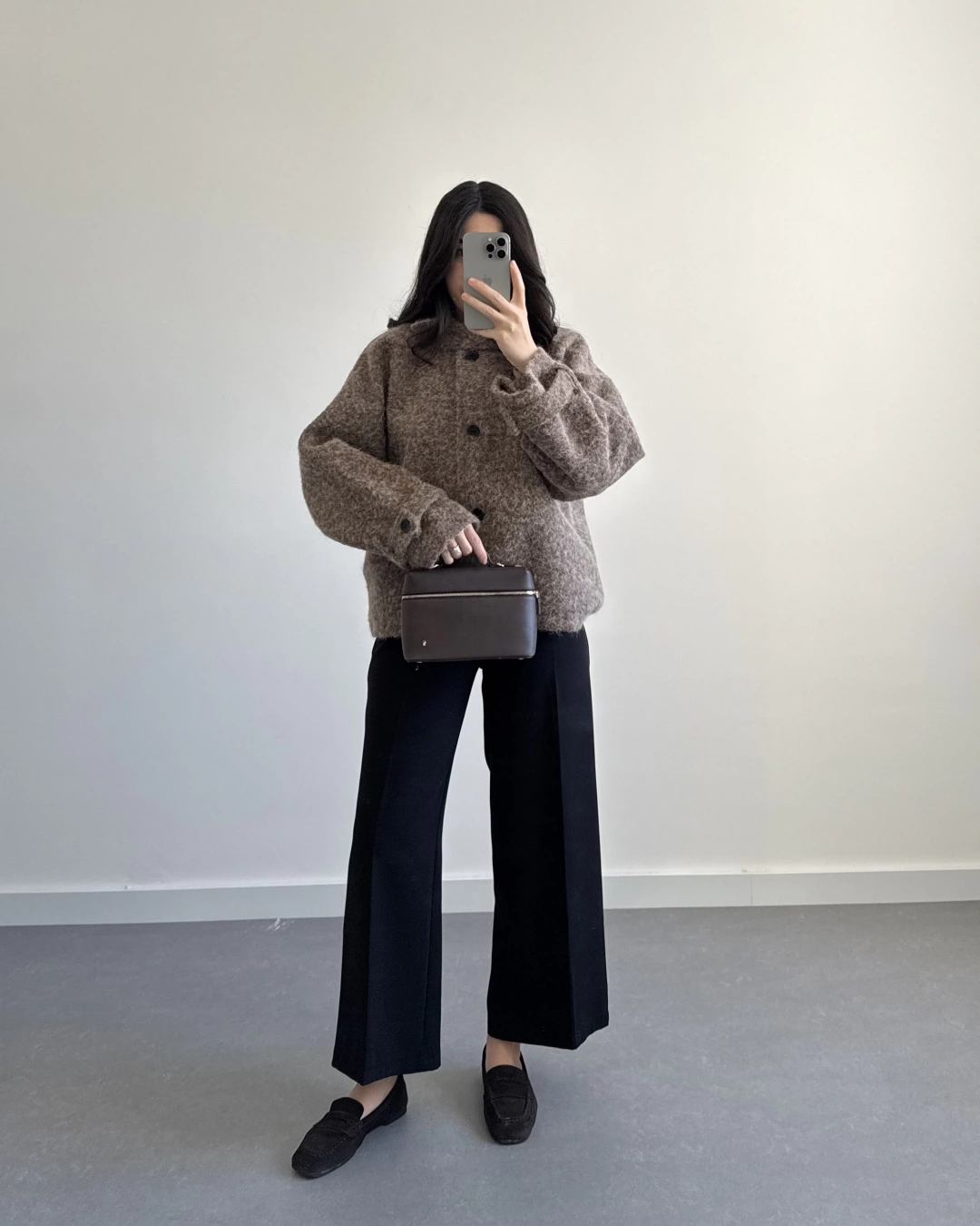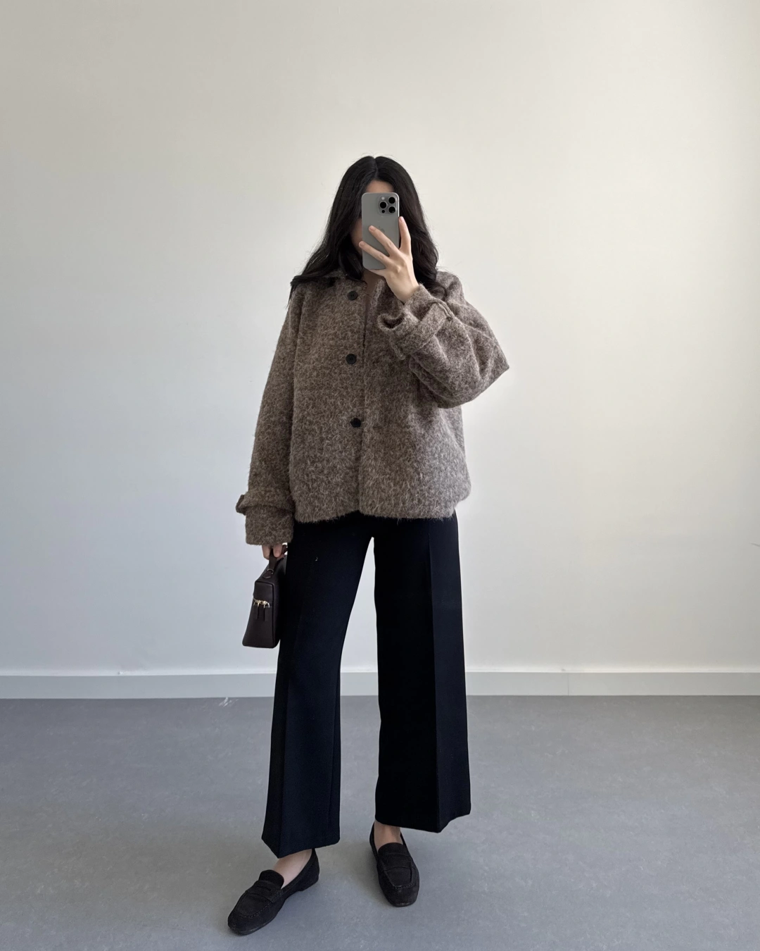 PREMİUM DÜĞMELİ KAŞE CEKET KAHVE