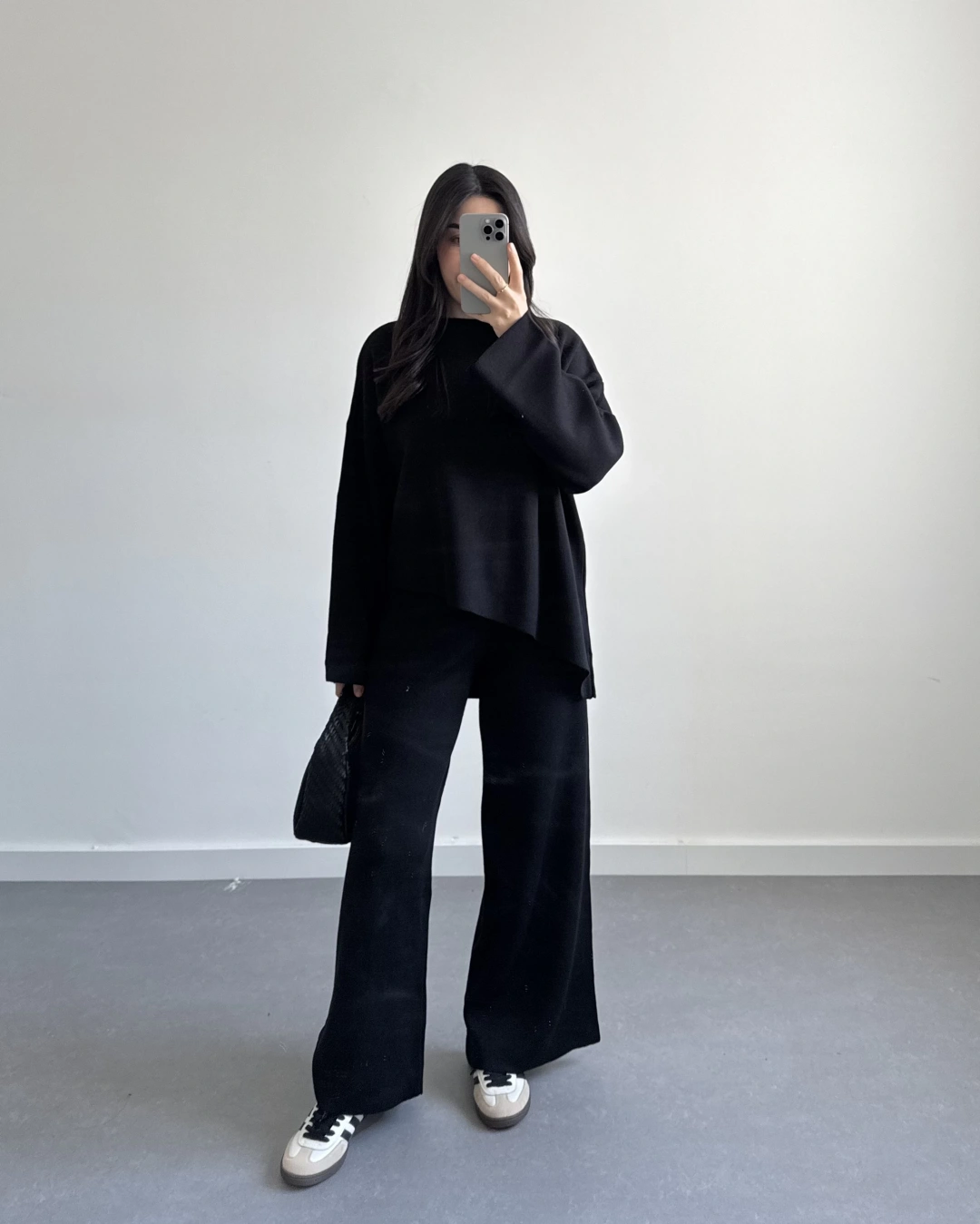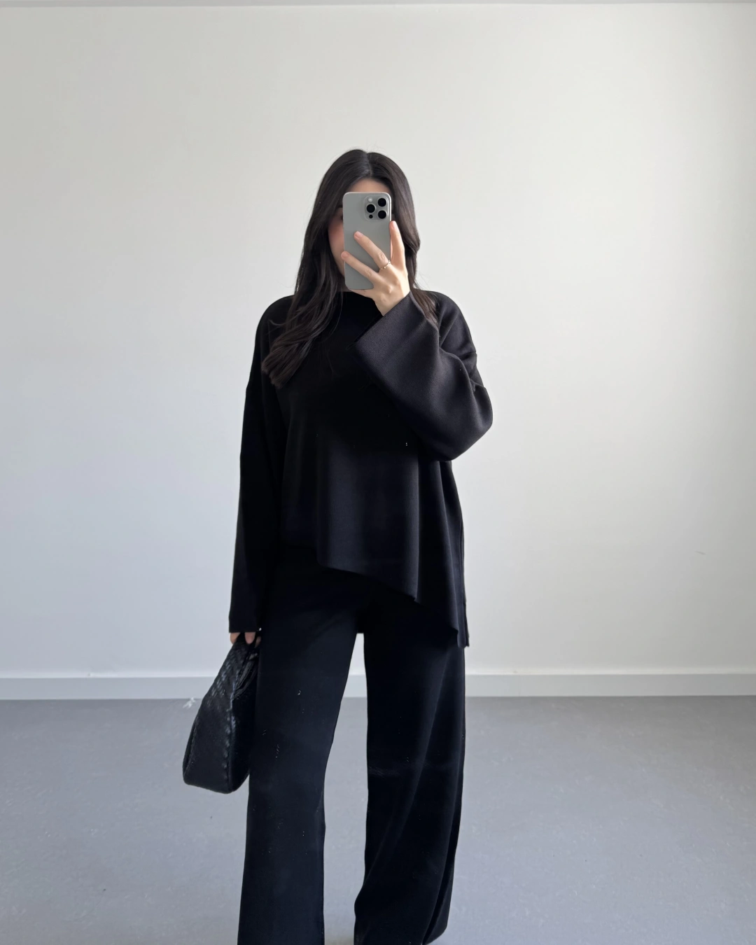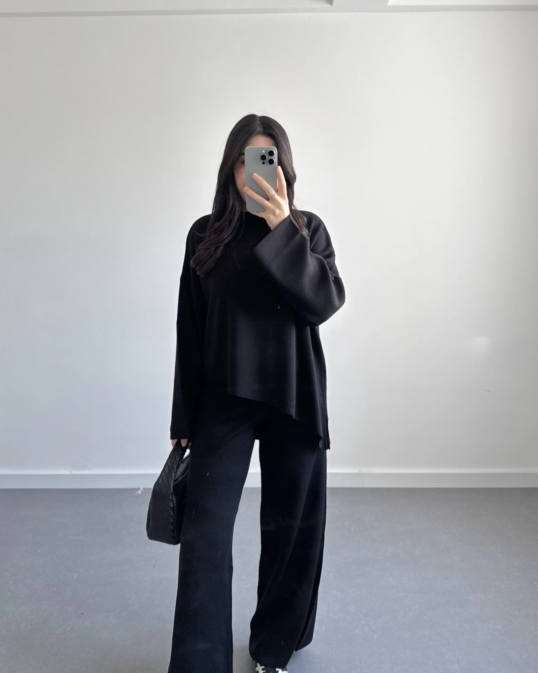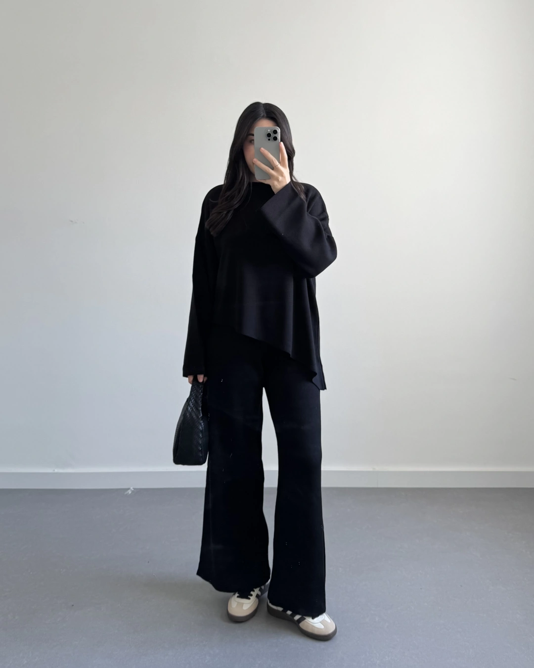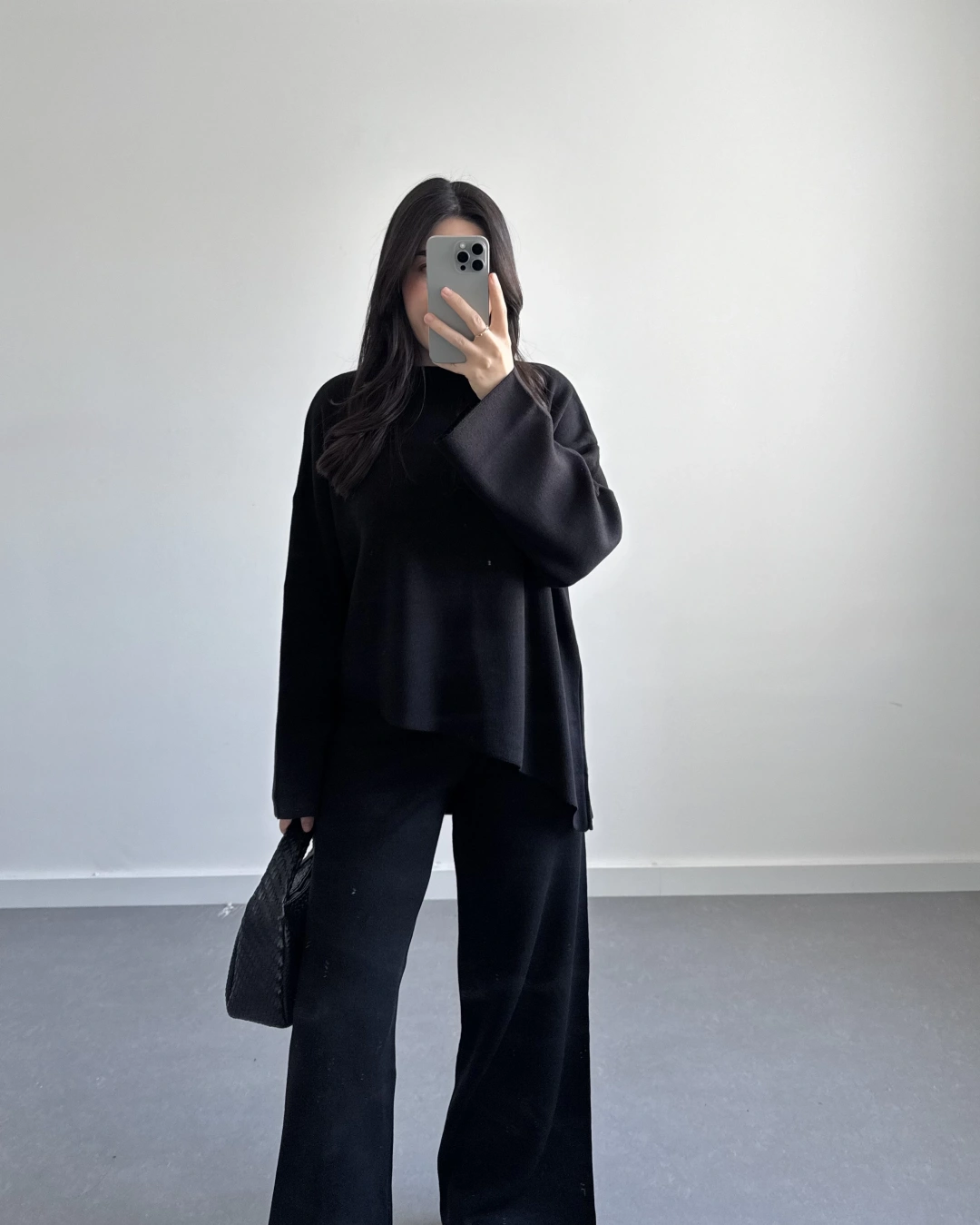 SİYAH ASİMETRİK KESİM TRİKO TAKIM