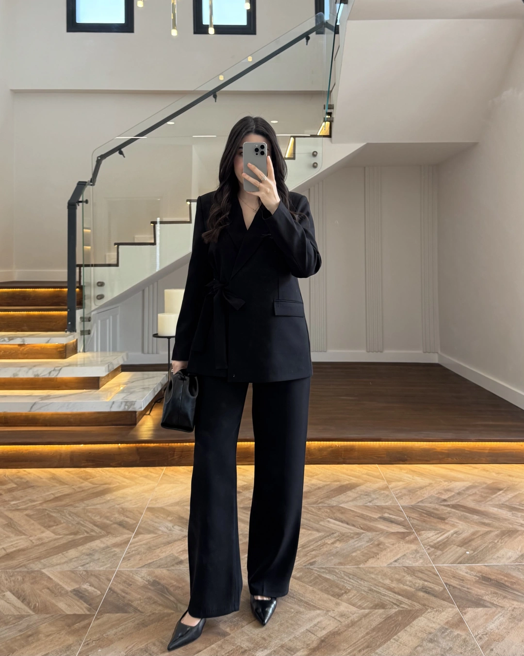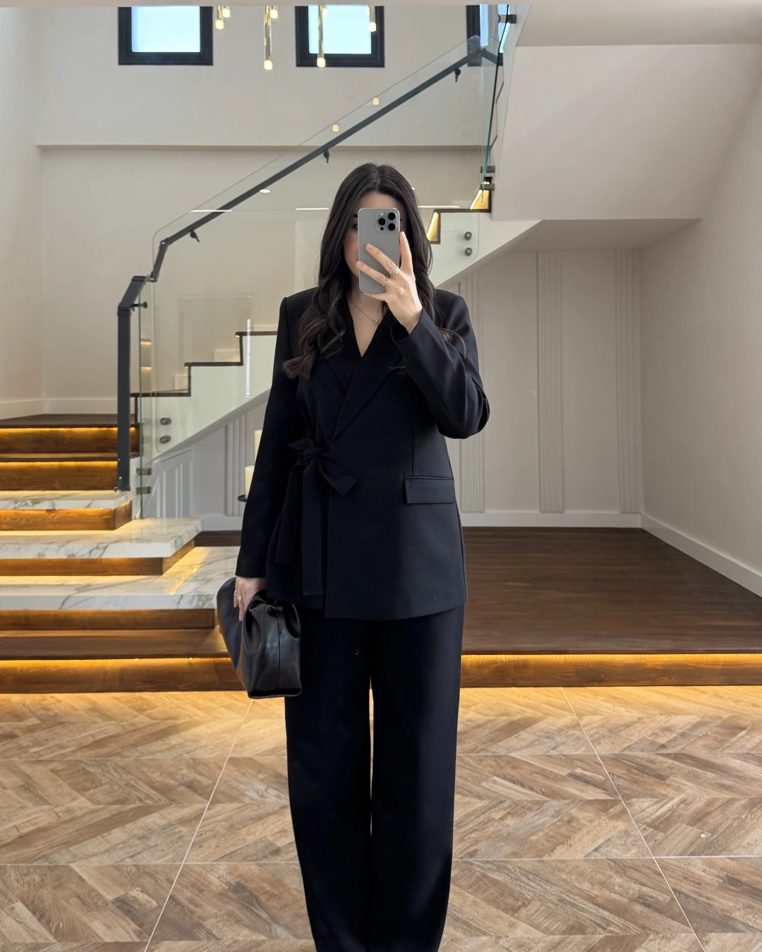 SİYAH BAĞLAMA DETAYLI BLAZER CEKET -7657