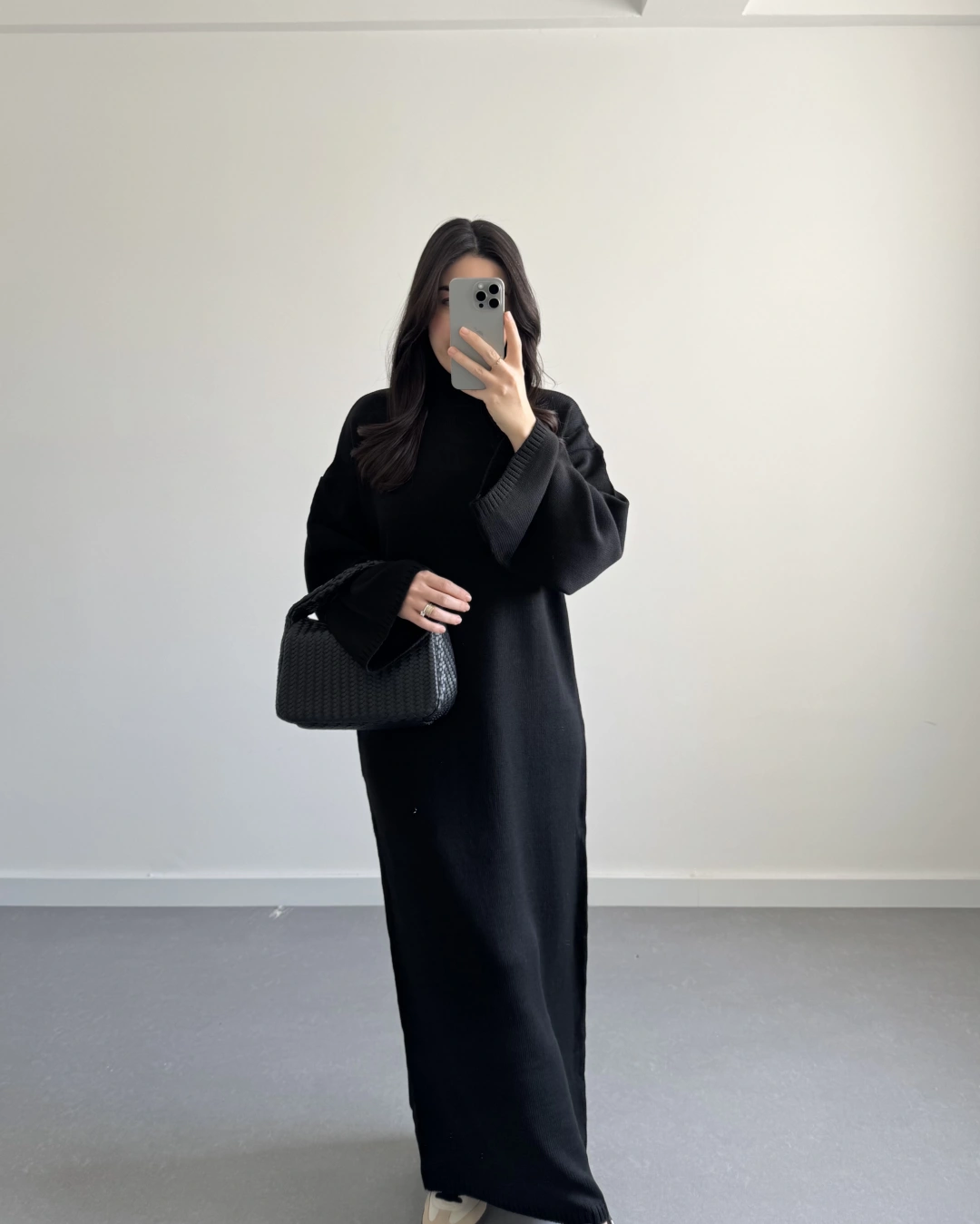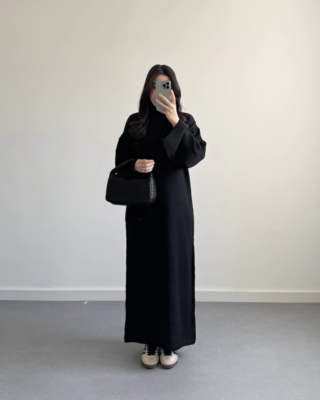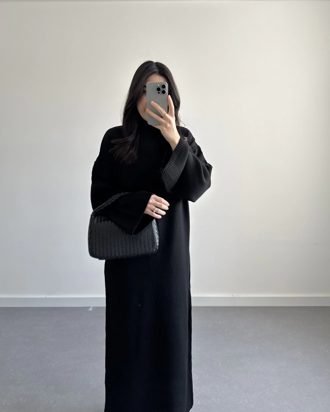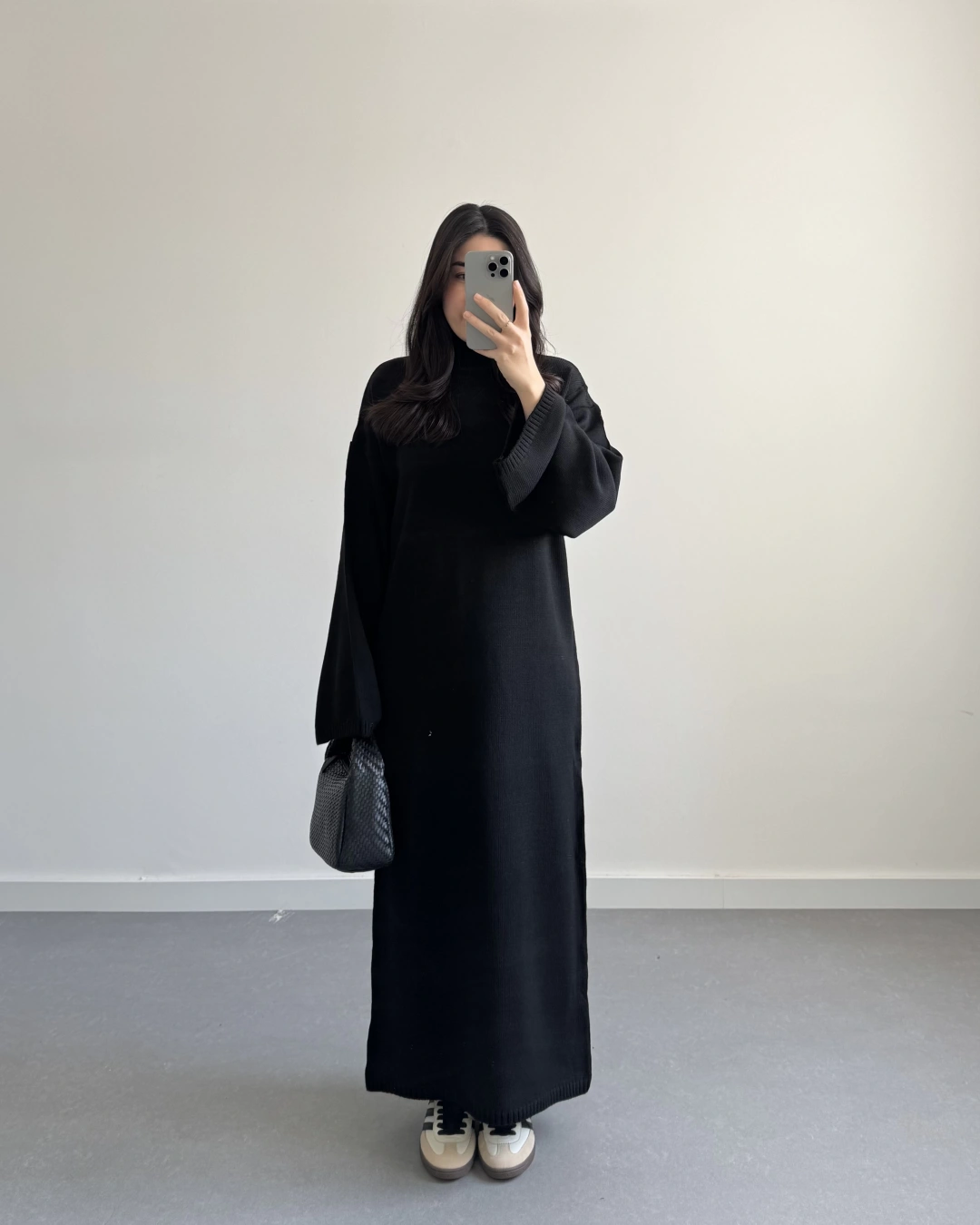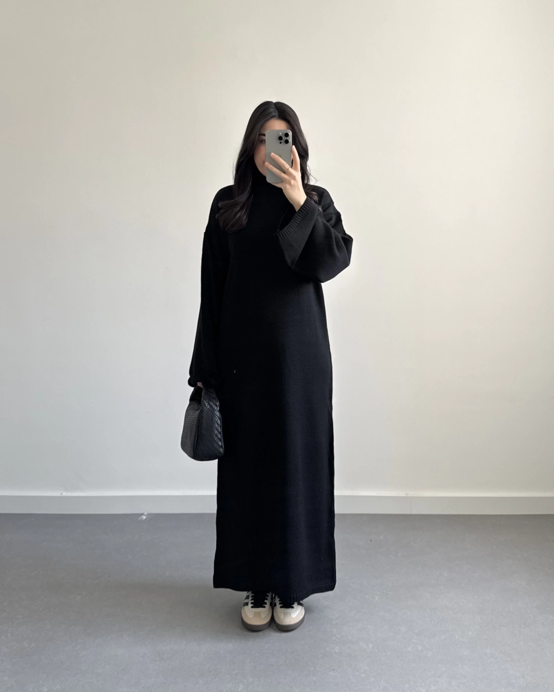 SİYAH BALIKÇI YAKA TRİKO ELBİSE