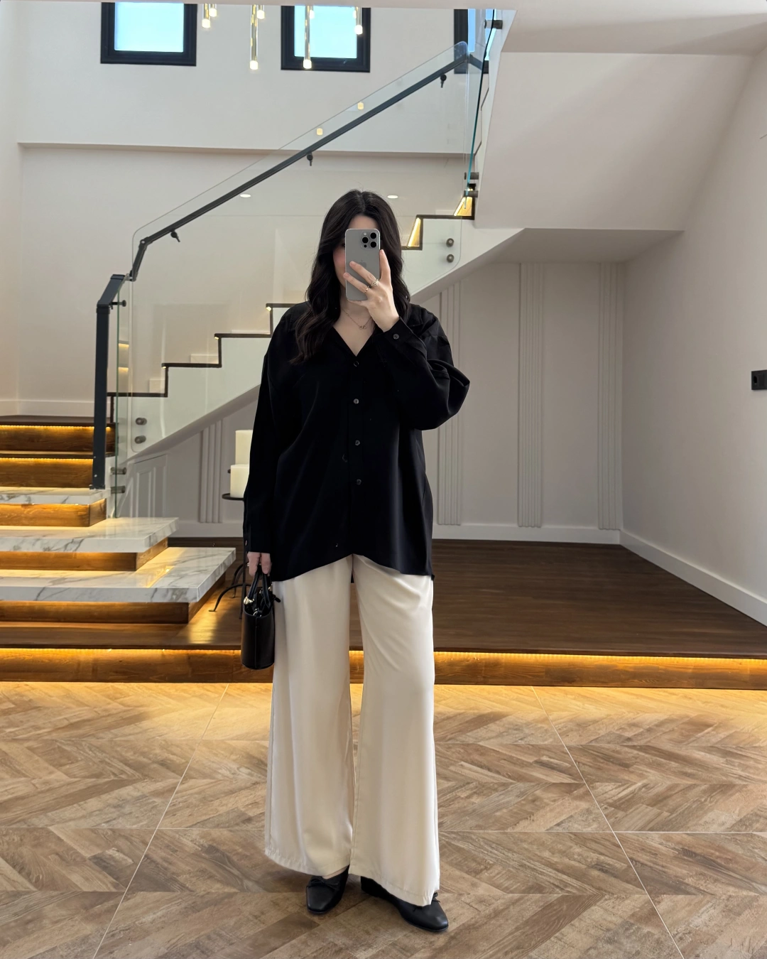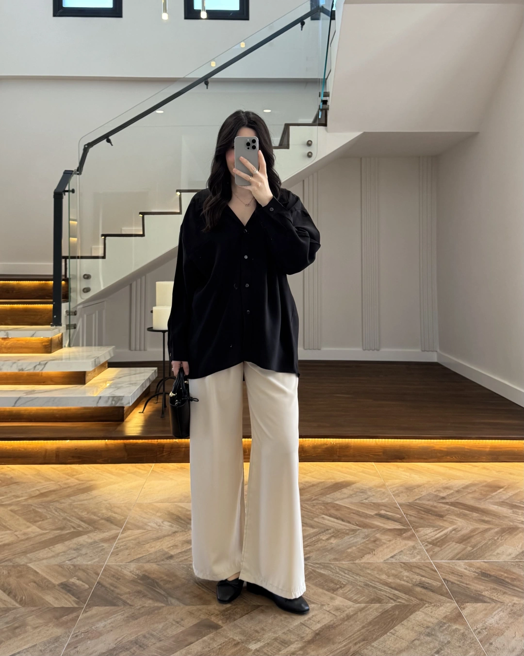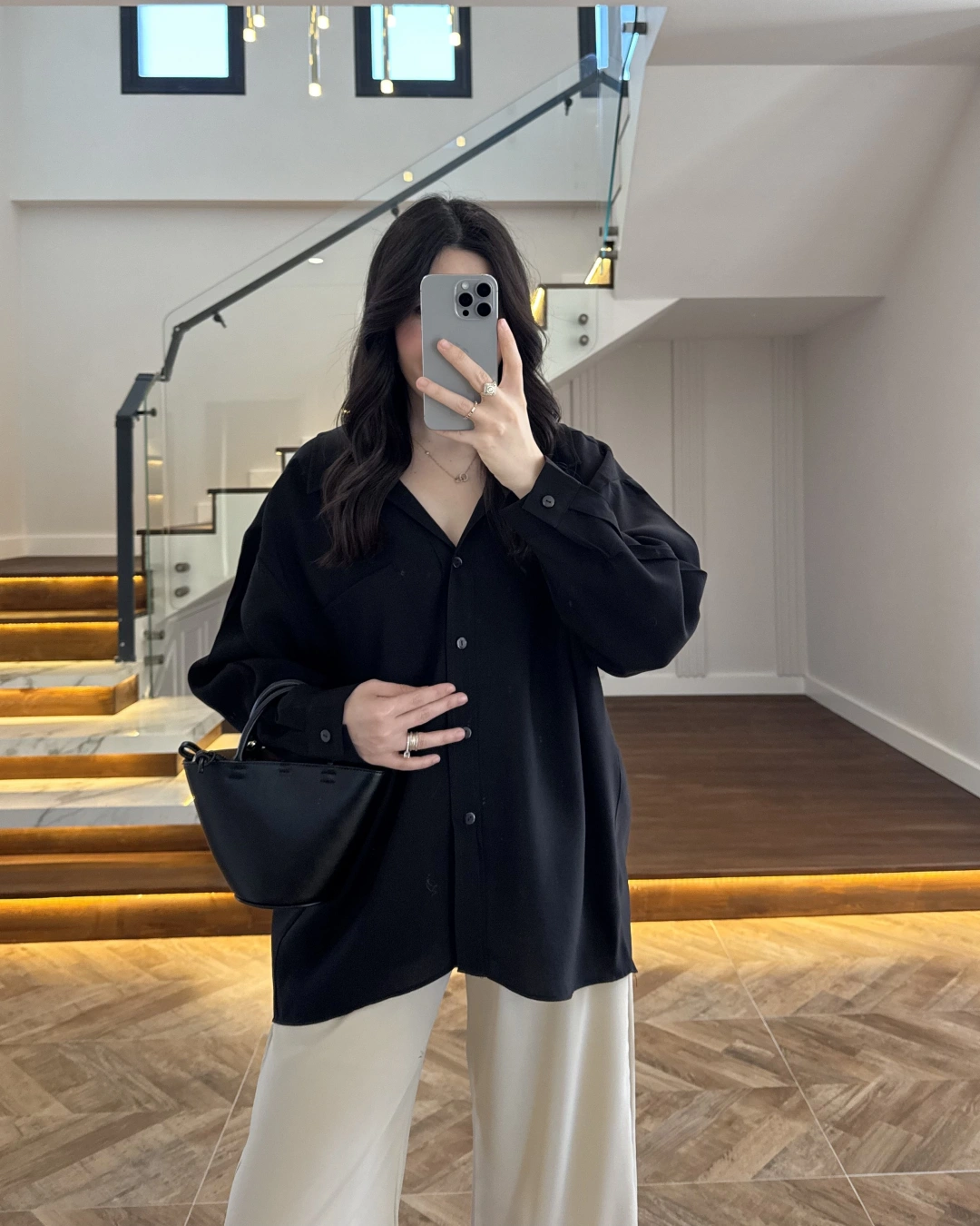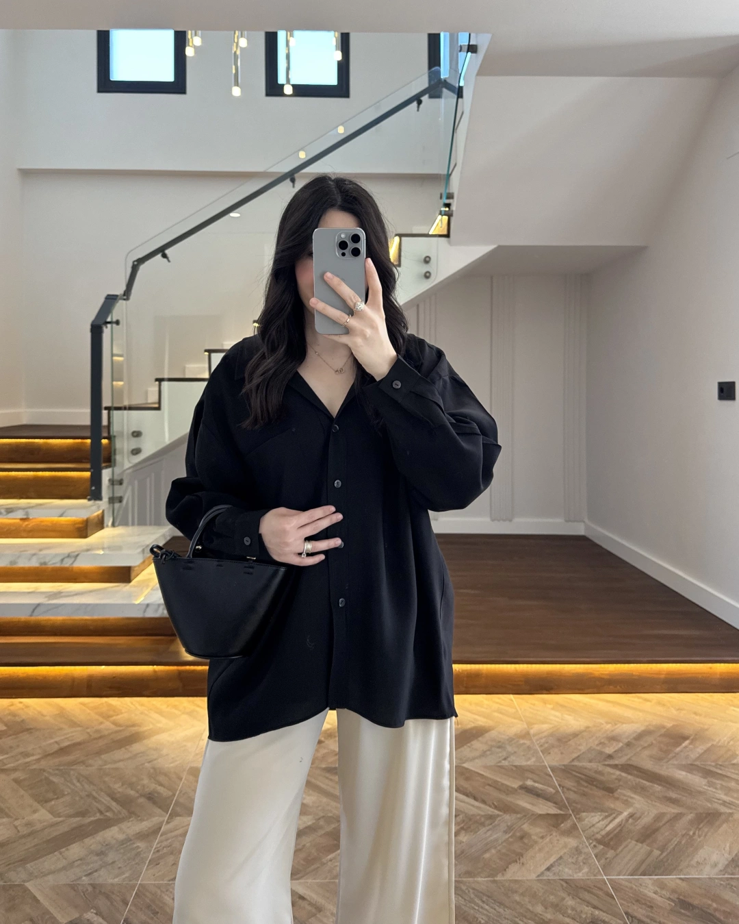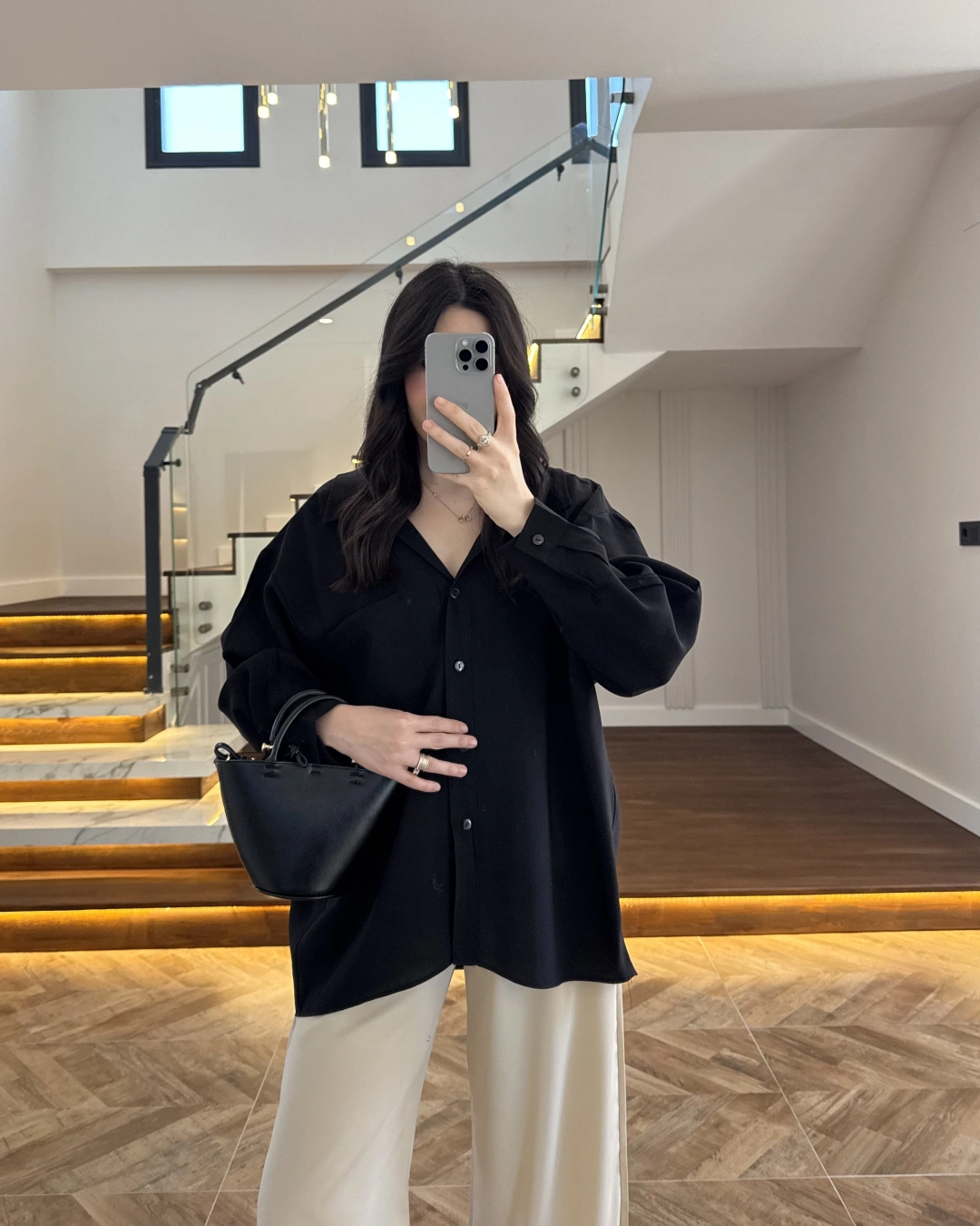 SİYAH DÜŞÜK OMUZLU MODAL GÖMLEK -5050