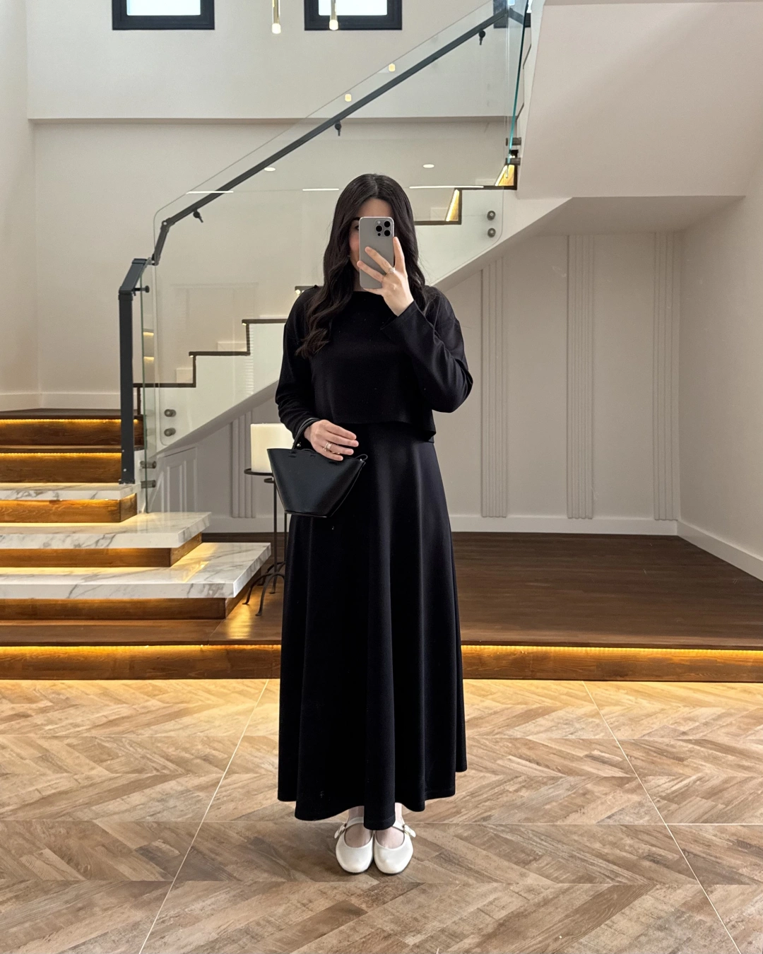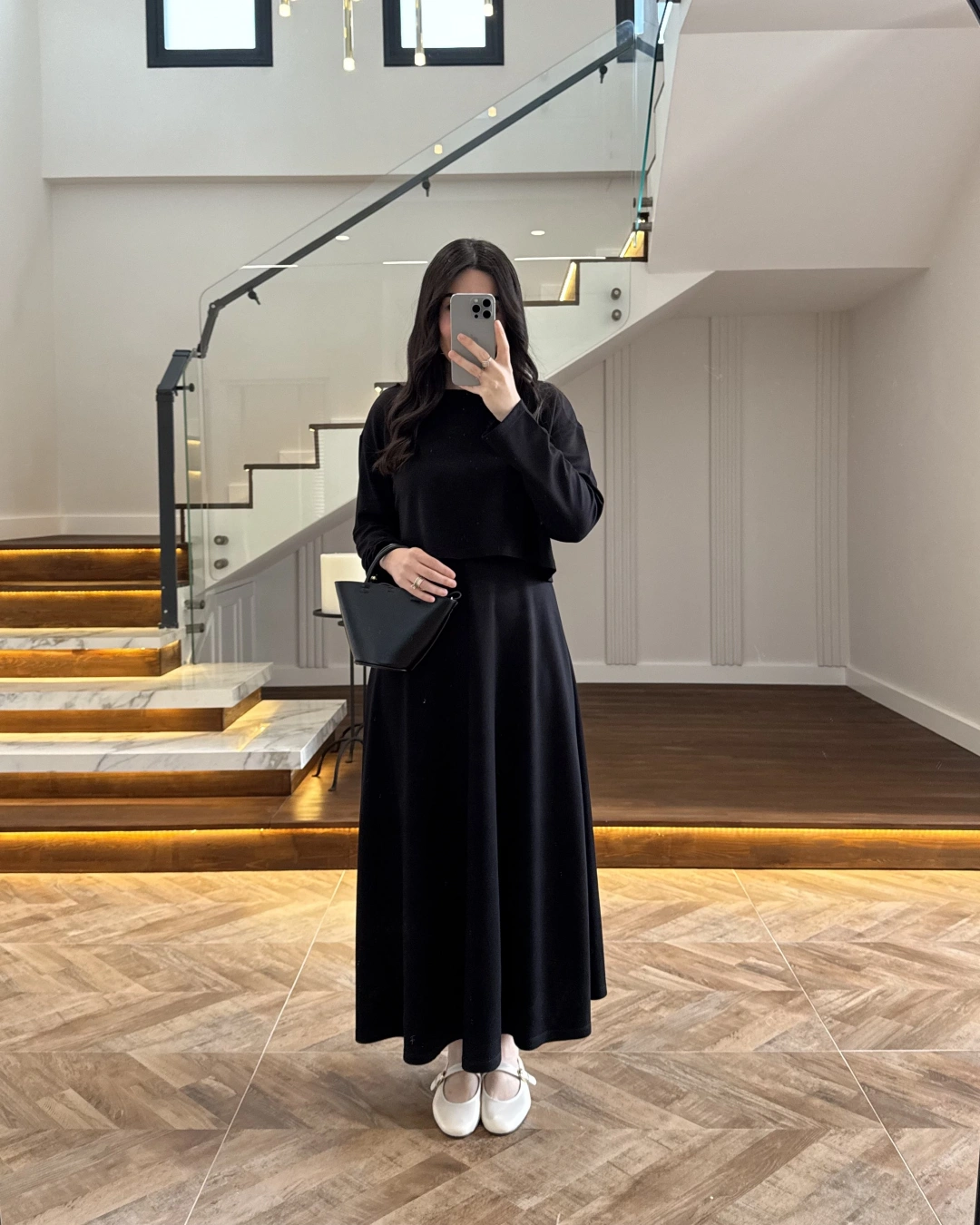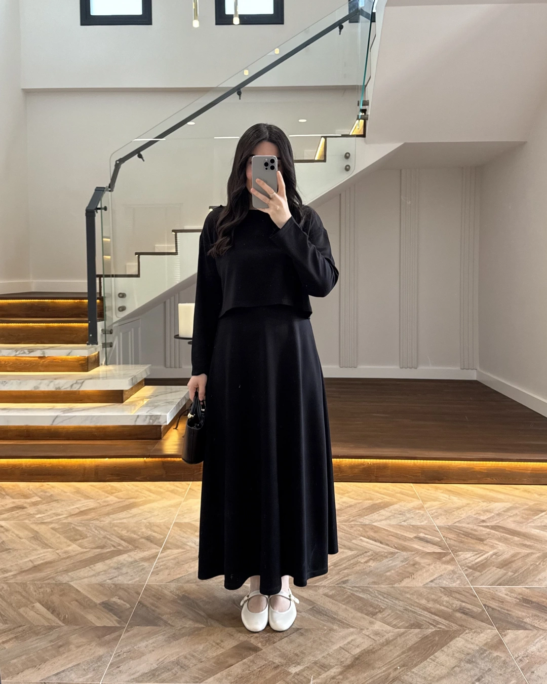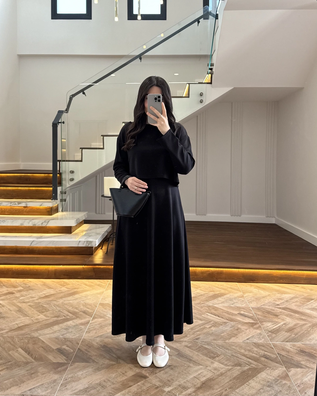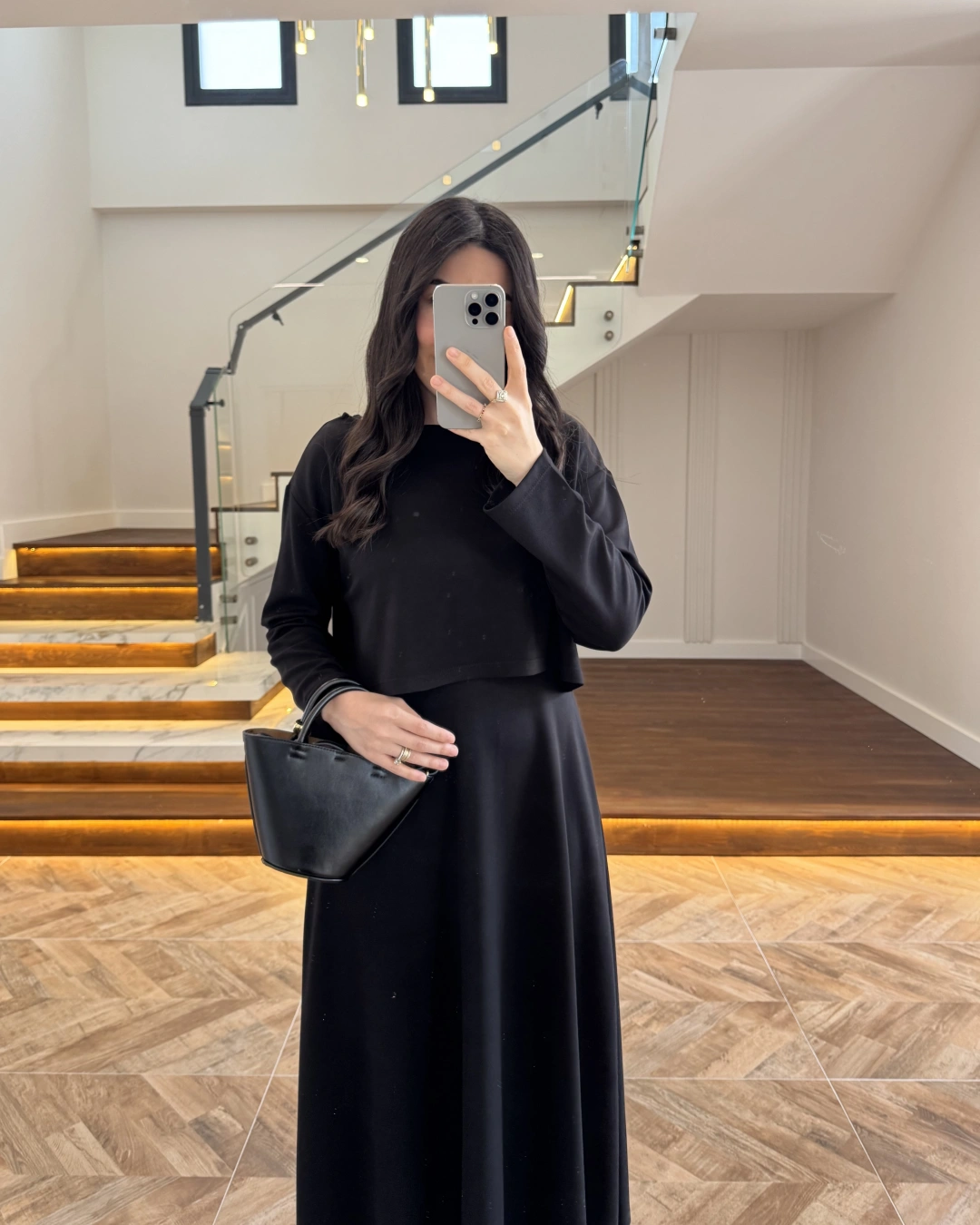 SİYAH MODAL İKİLİ ELBİSE -4064