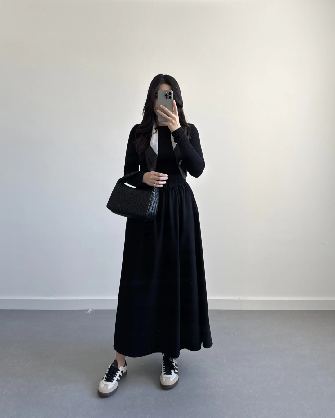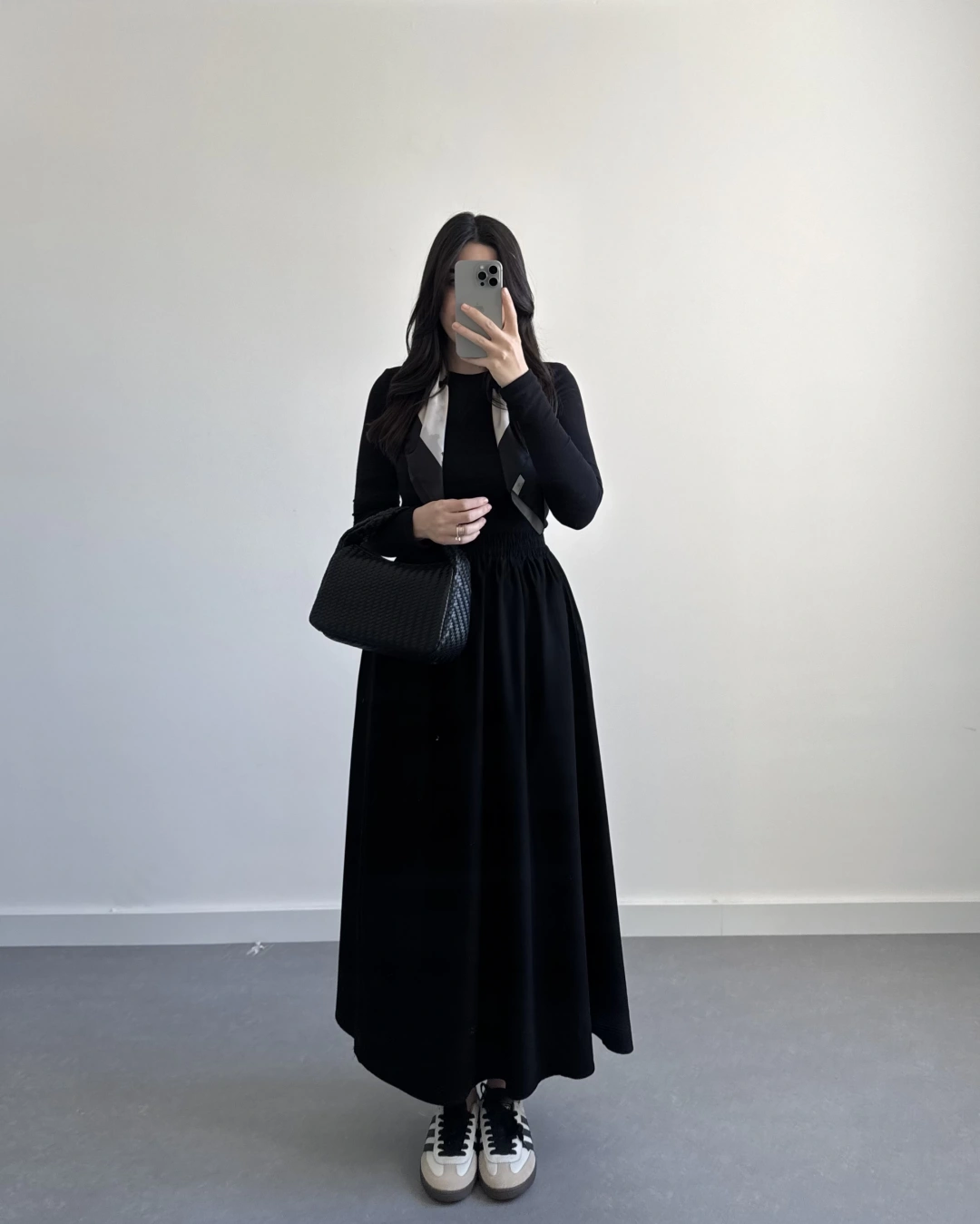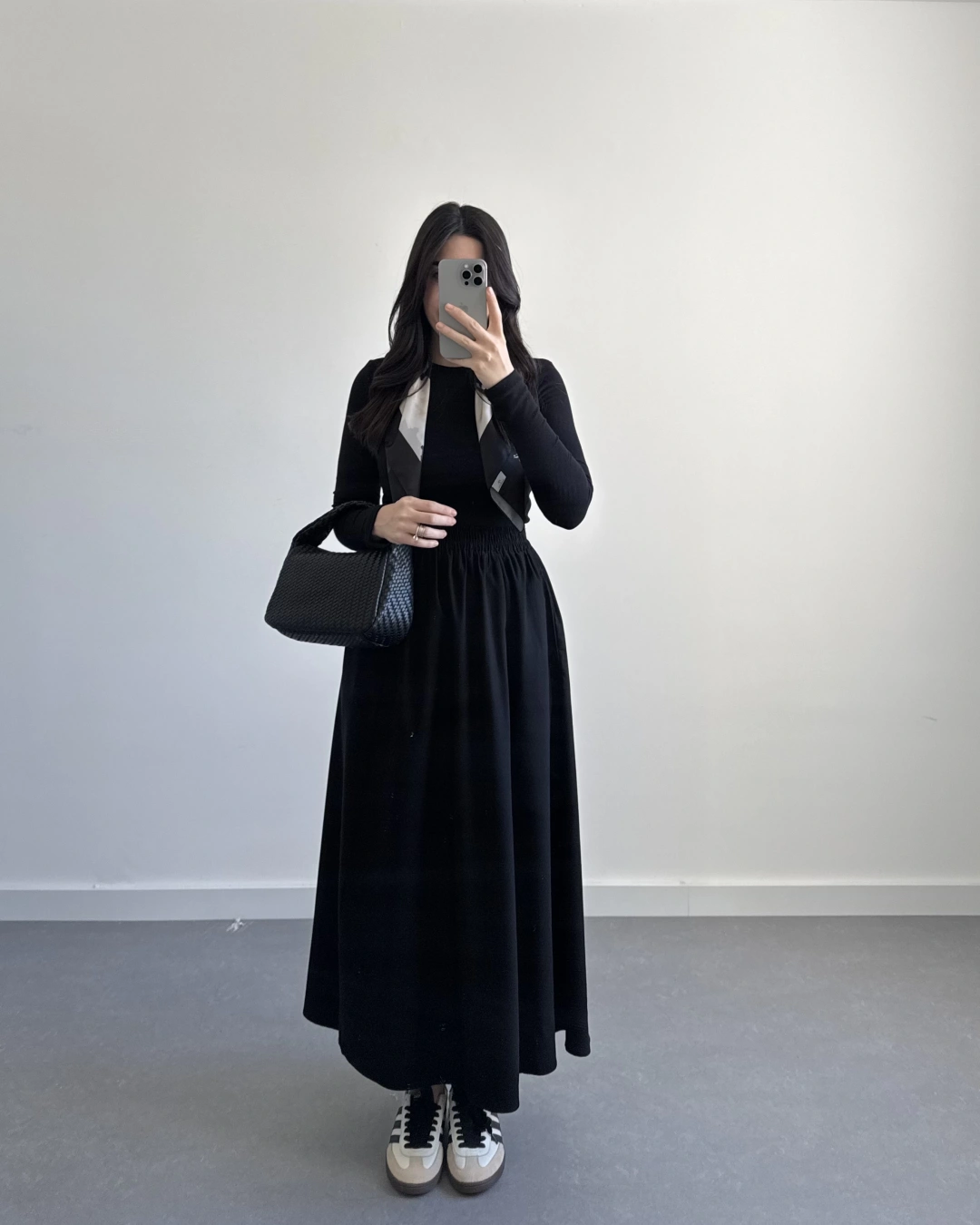 SİYAH BELİ KUŞAKLI PİLELİ MODAL TAKIM