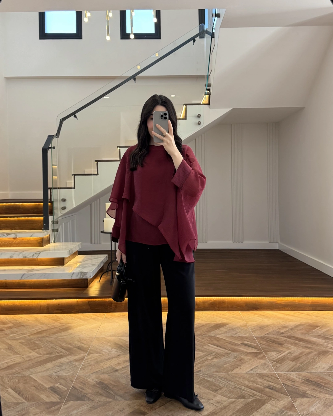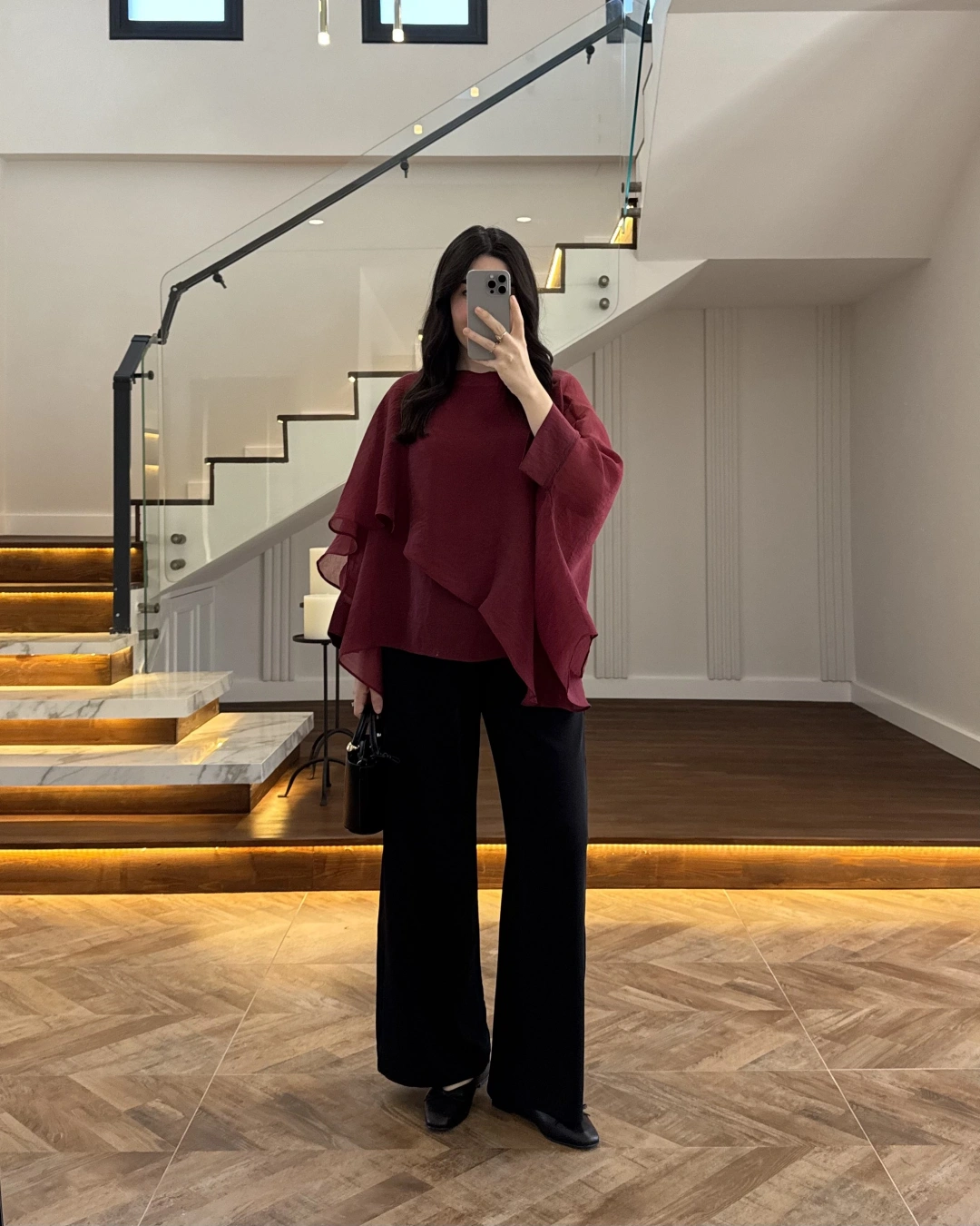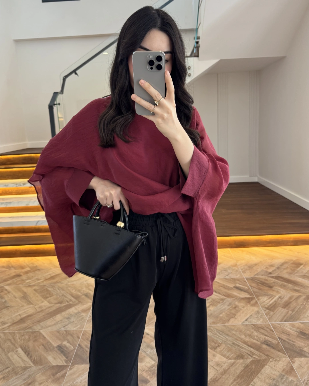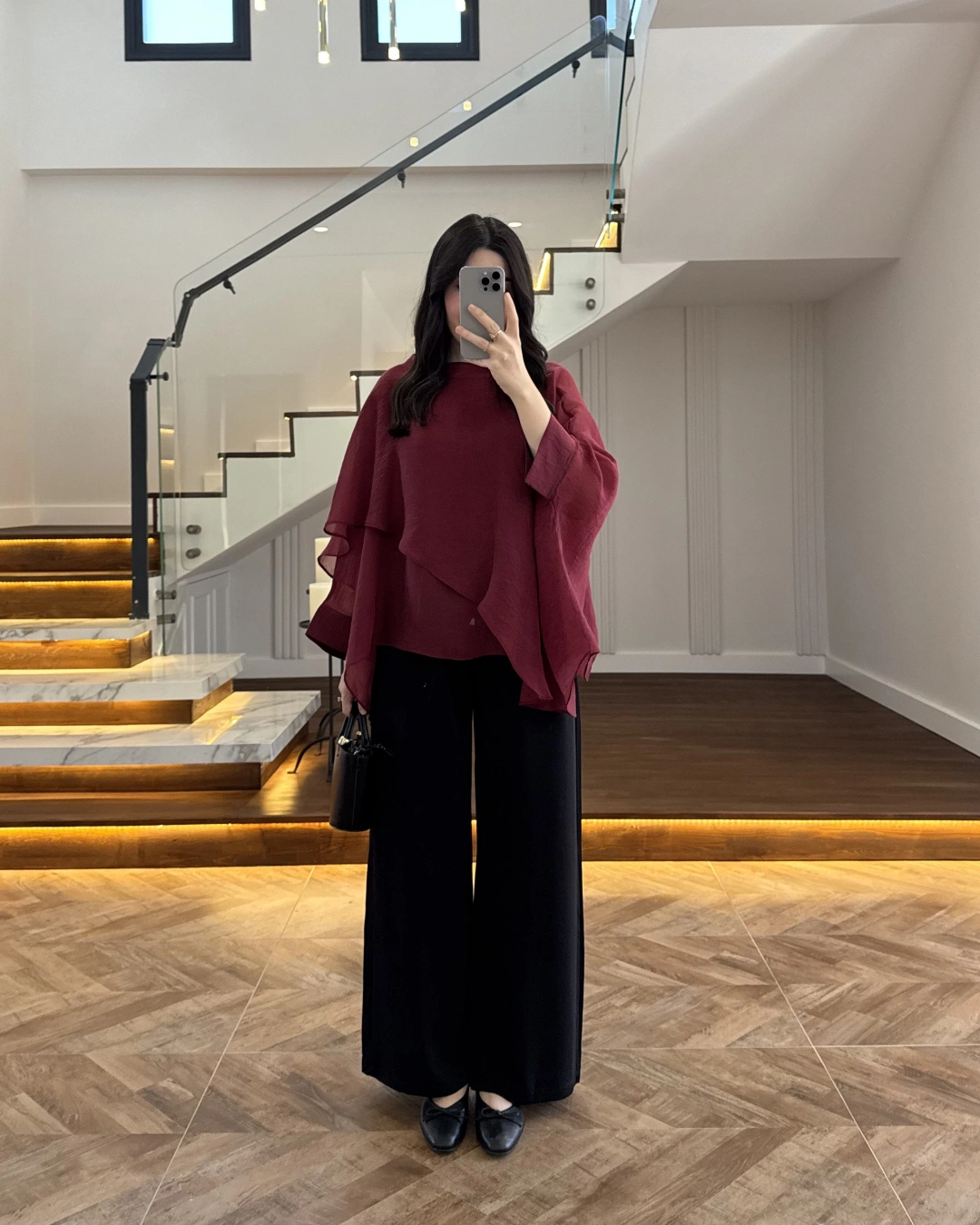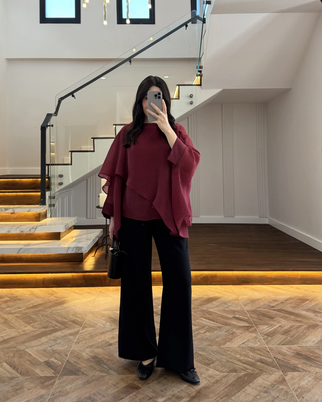 SİYAH KAT KAT PELERİN BLUZ -5044