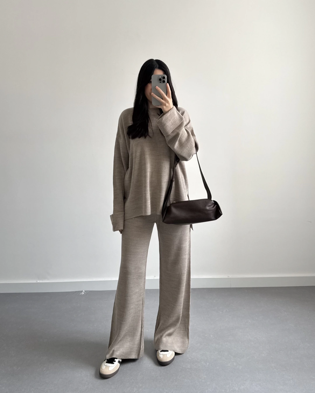 KOYU KAHVE SELANİK KUMAŞ TRİKO TAKIM