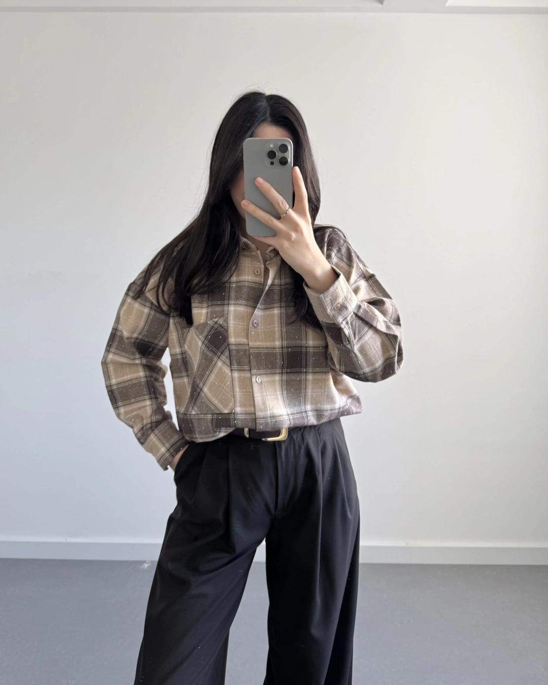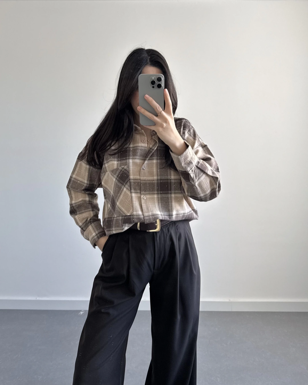 KAHVE TAŞLI EKOSE GÖMLEK