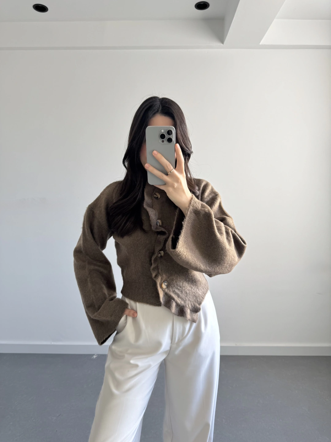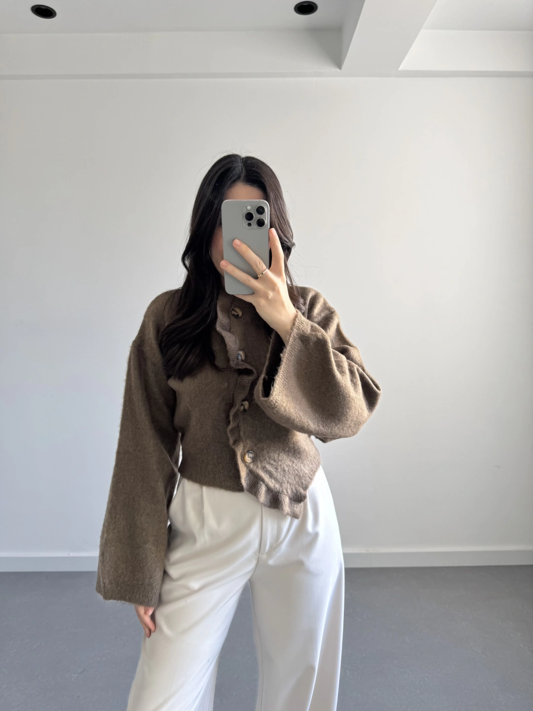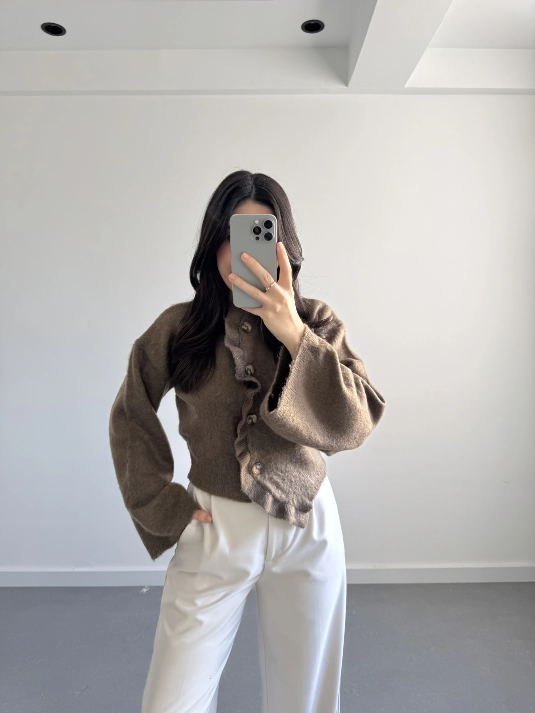 VOLAN DETAYLI TRİKO HIRKA KAHVE