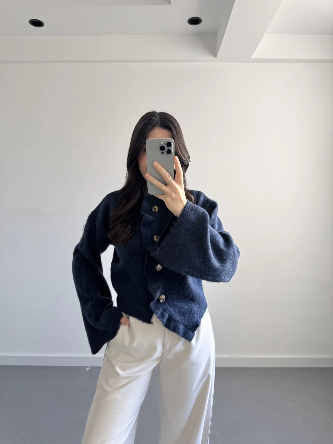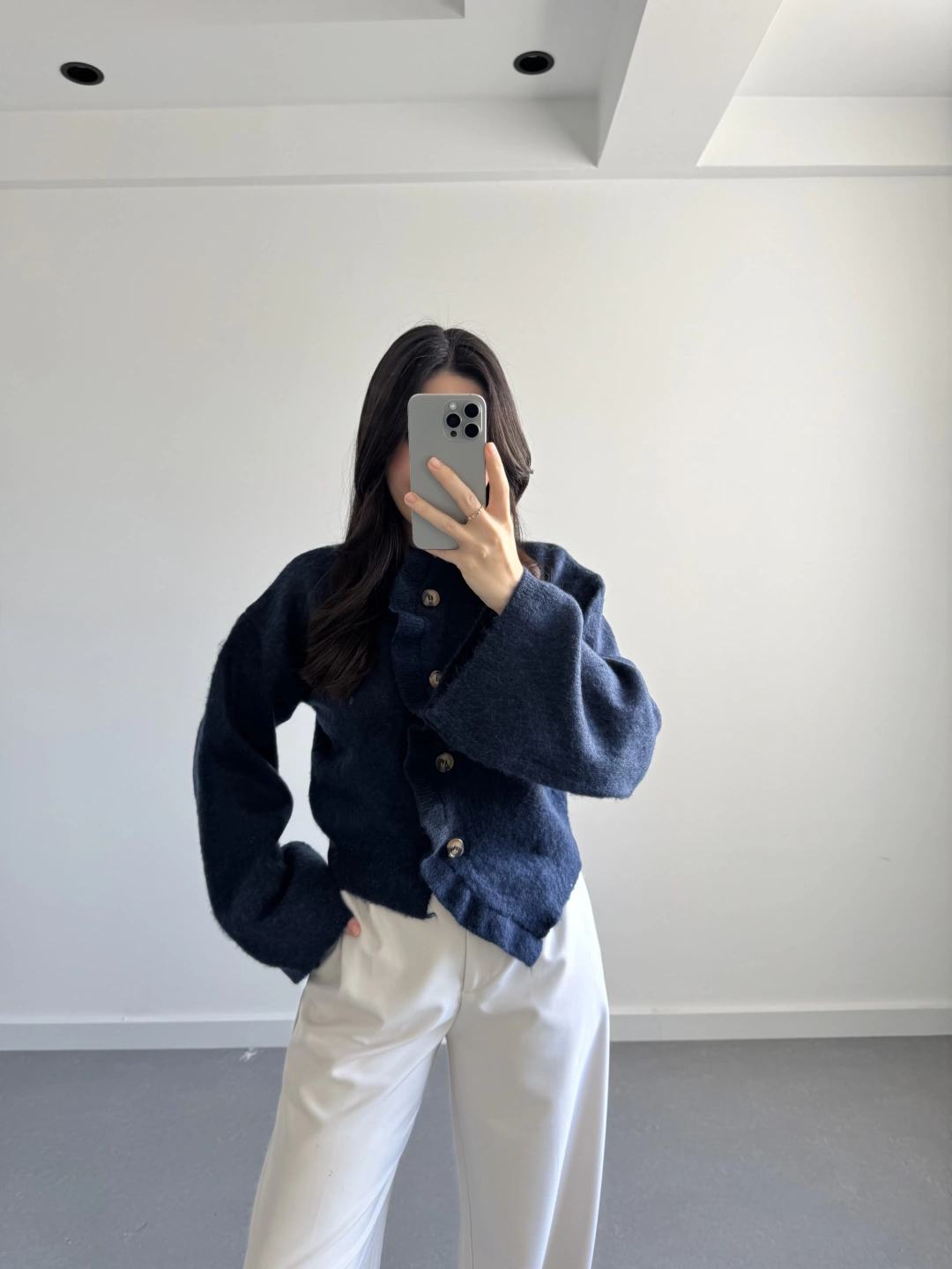 VOLAN DETAYLI TRİKO HIRKA LACİVERT