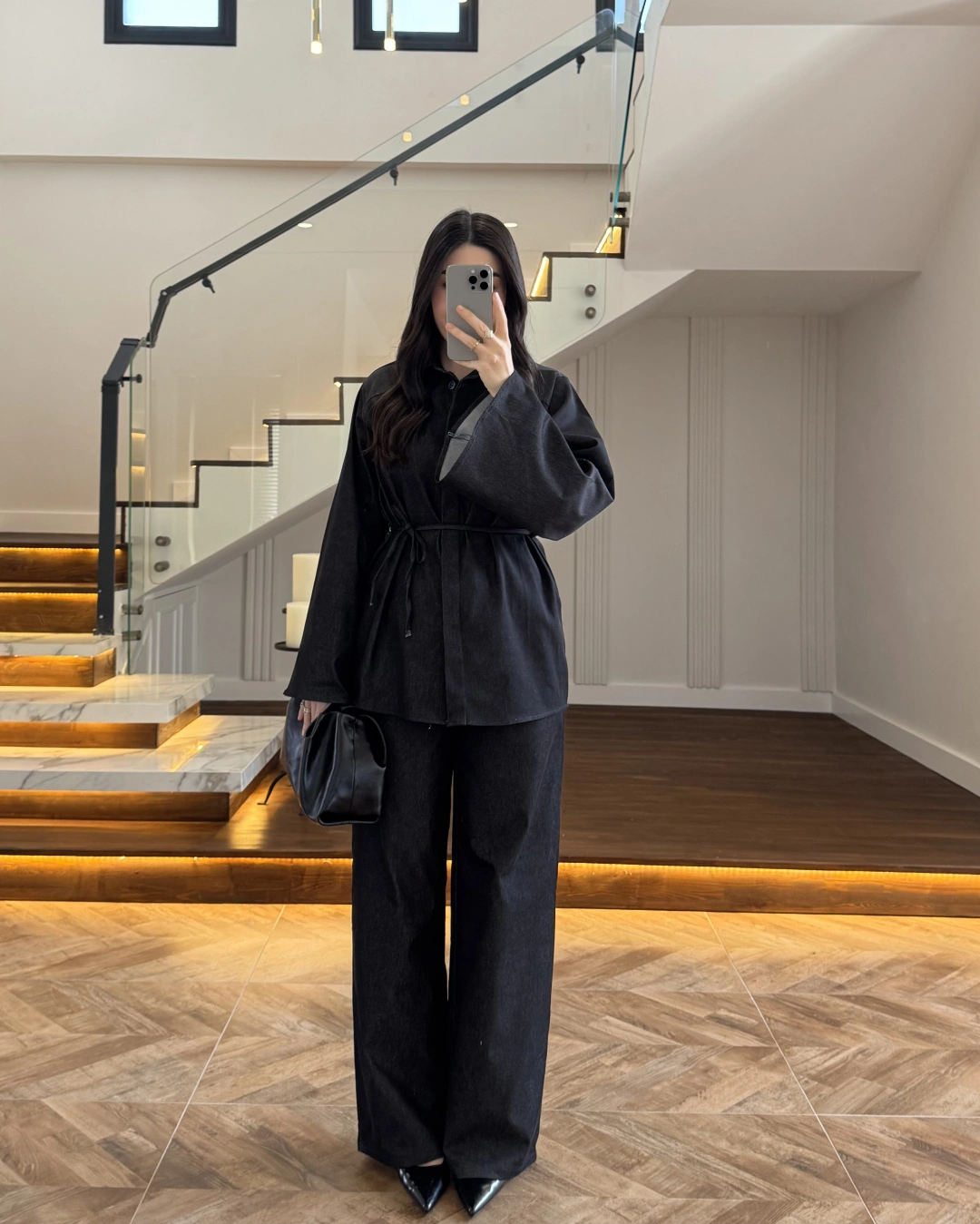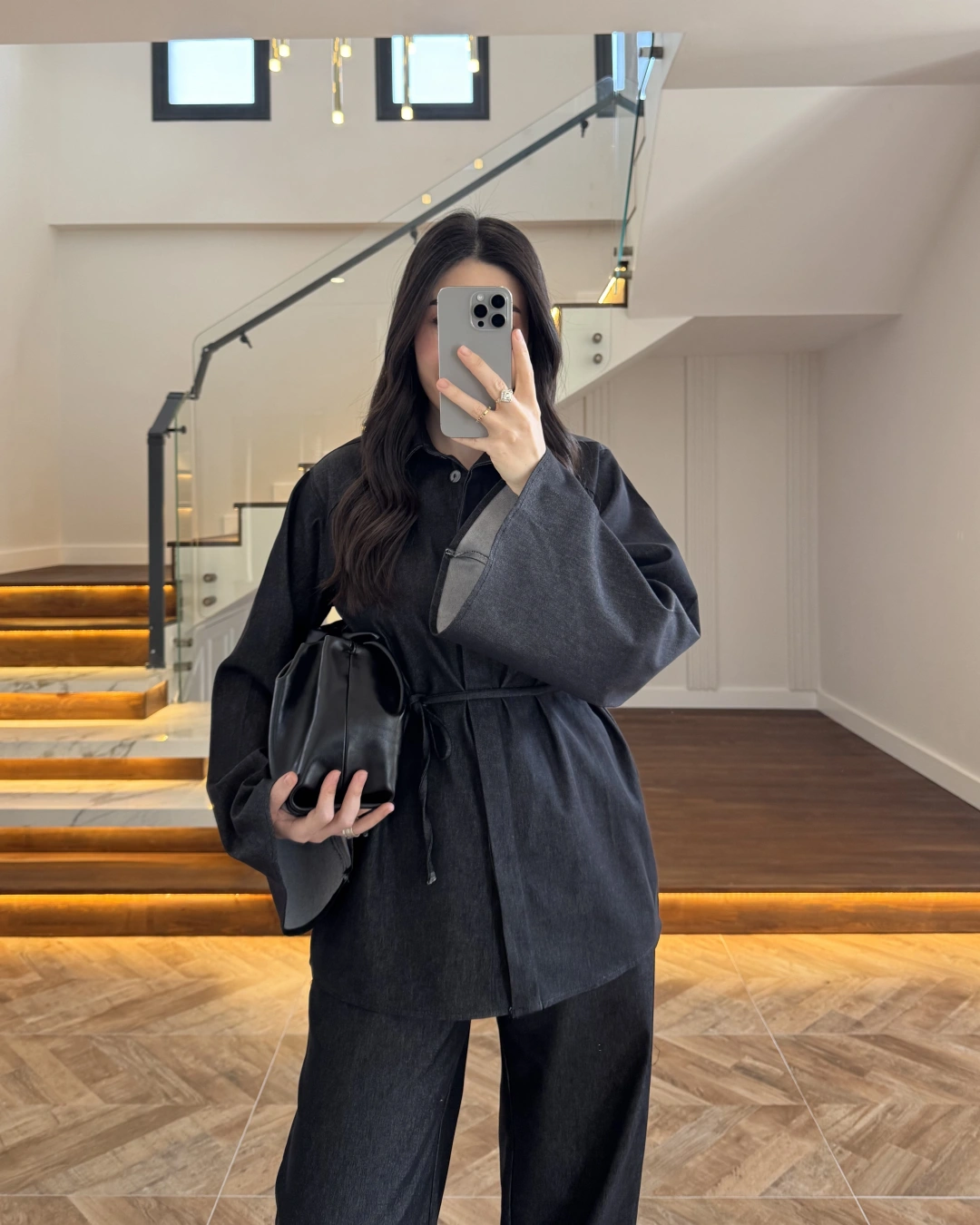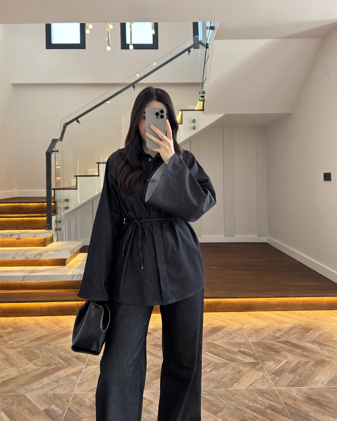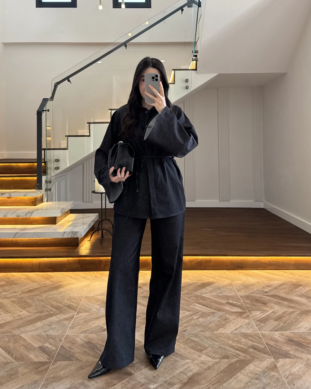 SİYAH TRANSPARAN KİMONO ETEK TAKIM