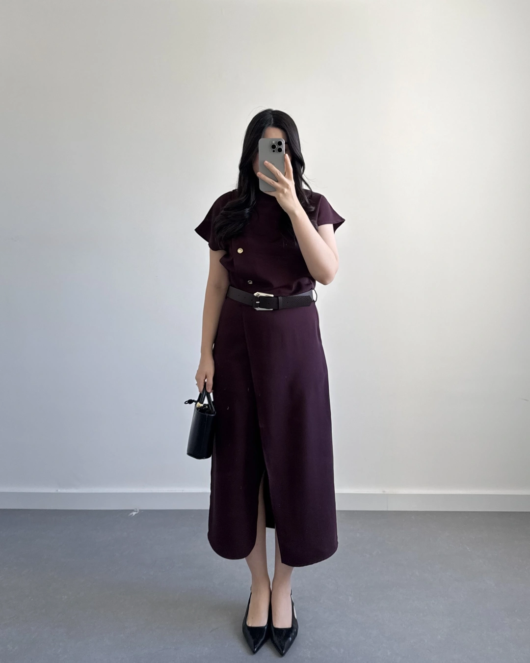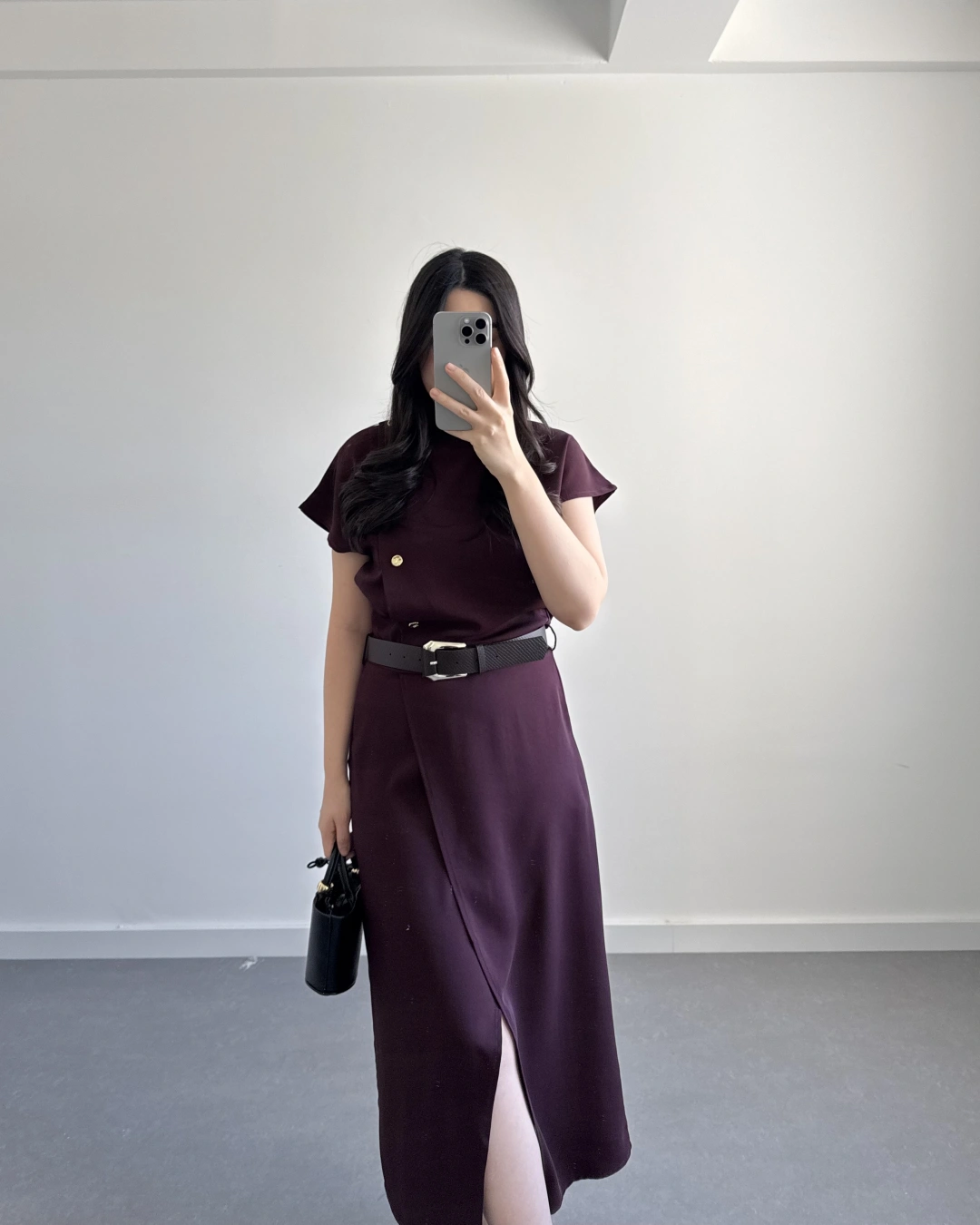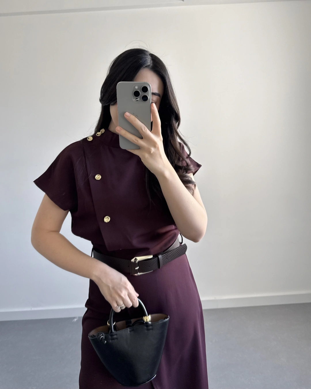 ZR MODEL BORDO KEMERLİ ELBİSE