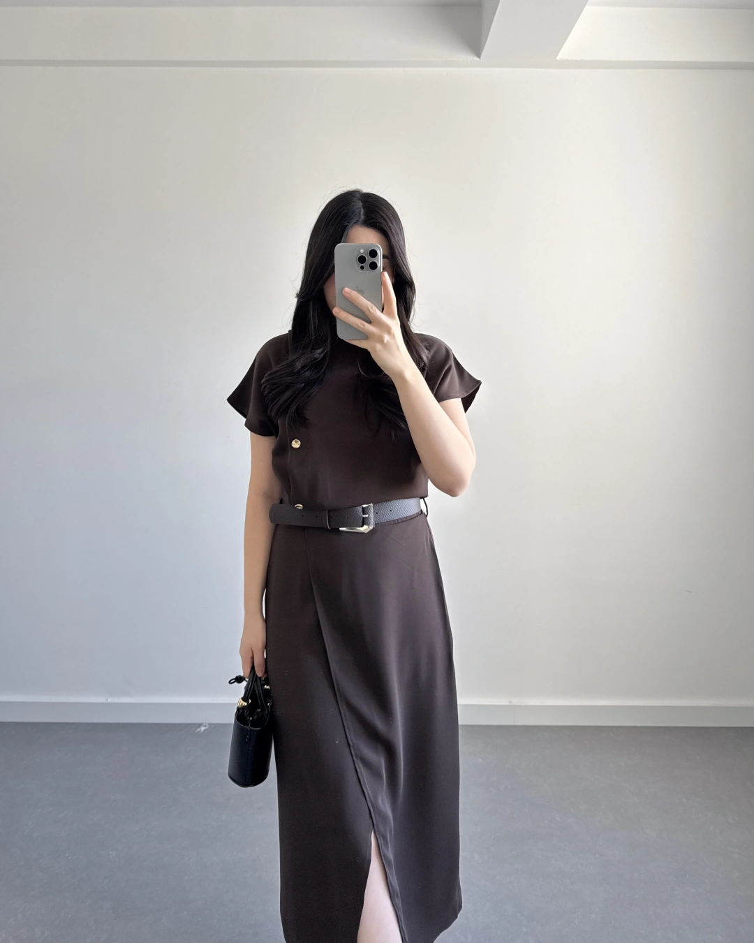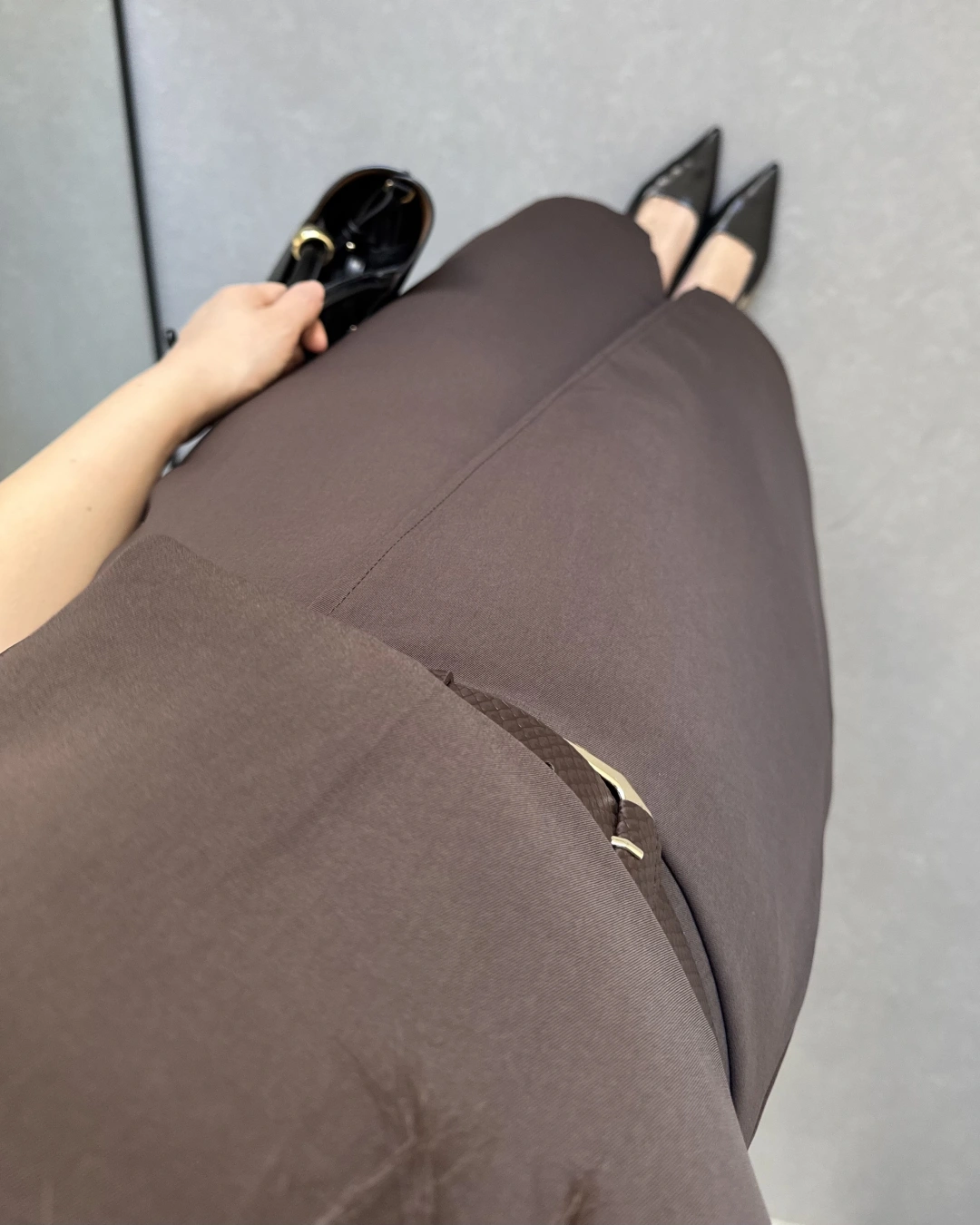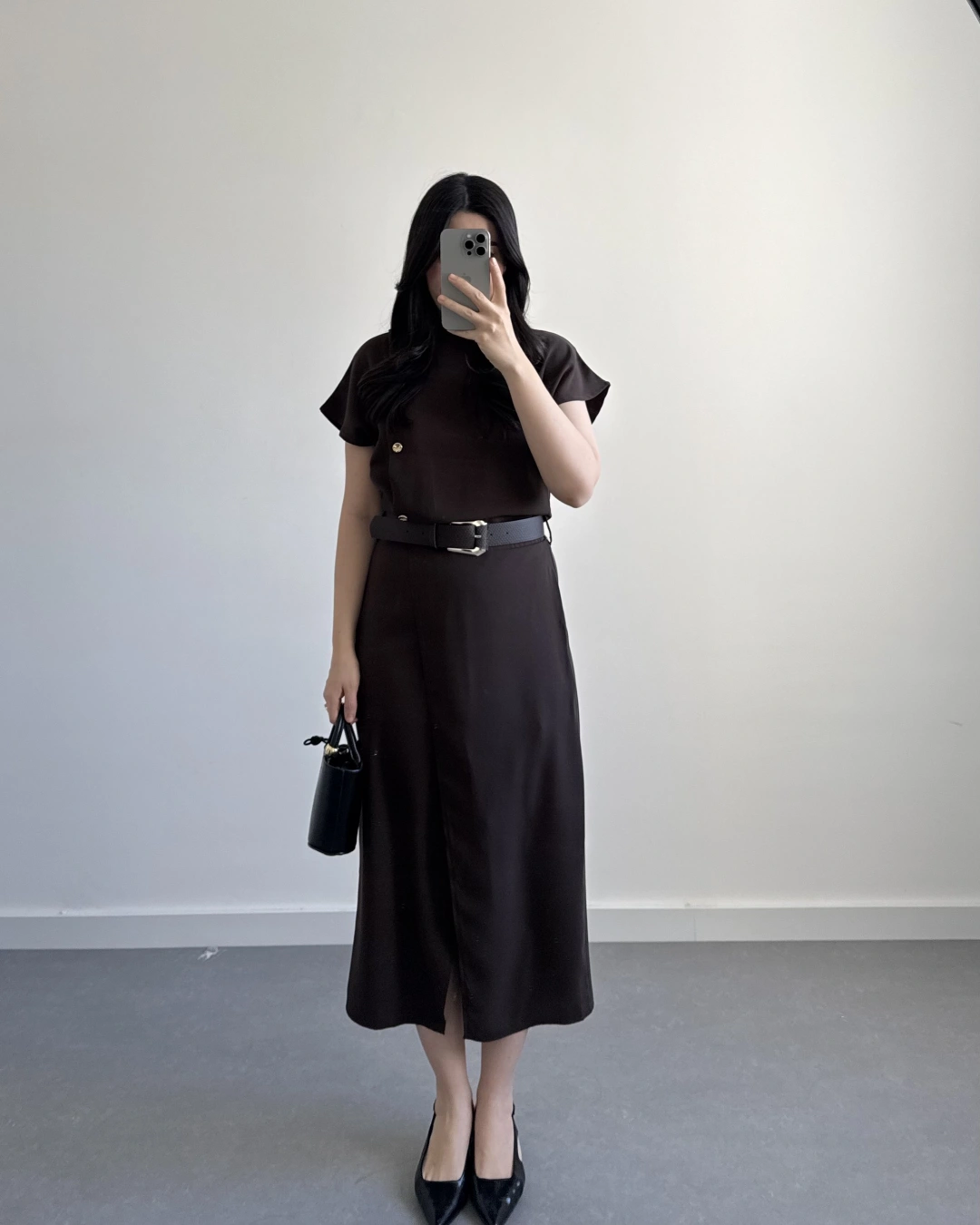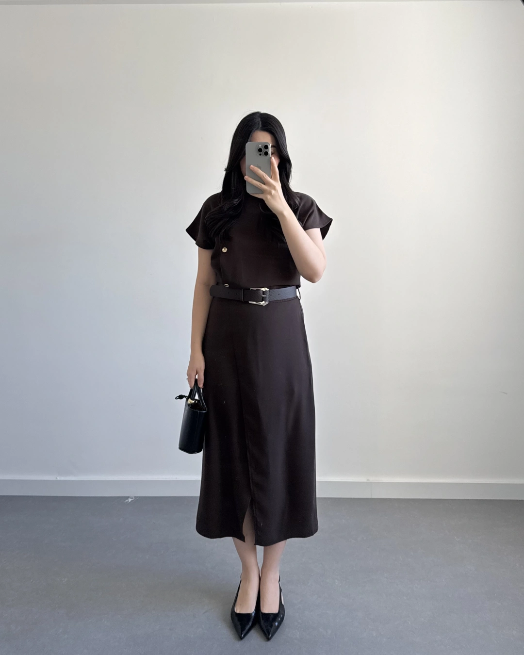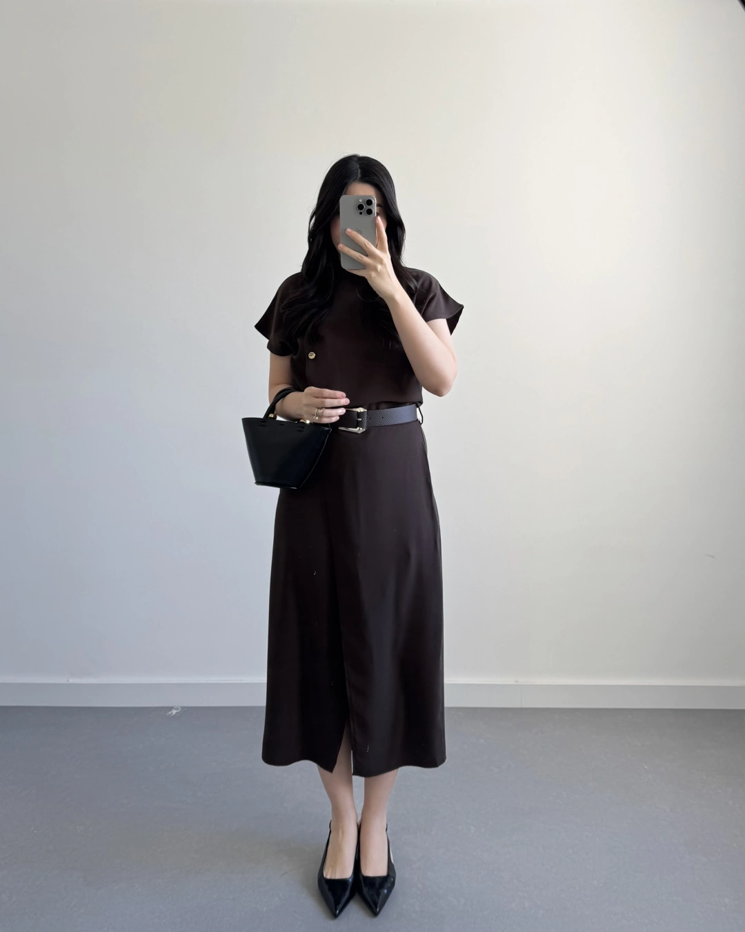 ZR MODEL KAHVE KEMERLİ ELBİSE